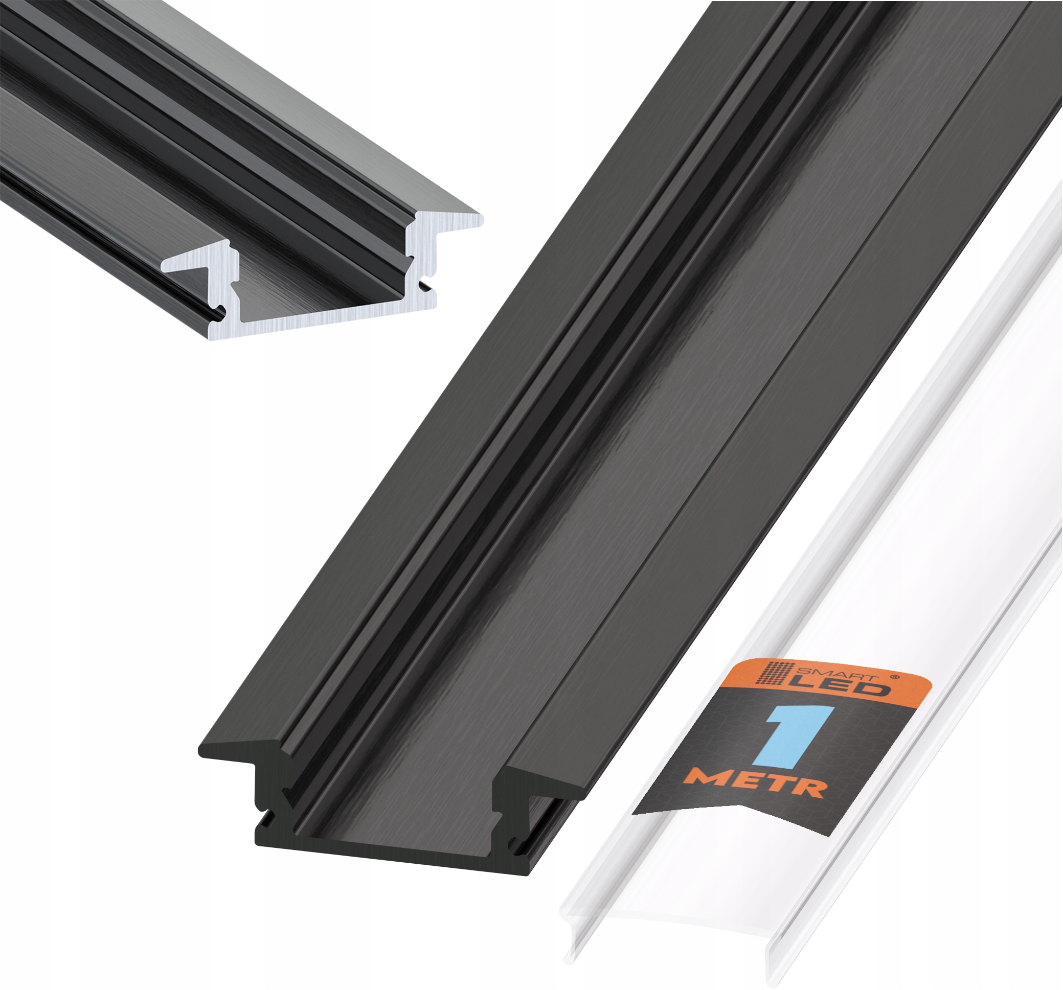 PROFIL LED do TAŚMA Czarny + KLOSZ Transparent 1M