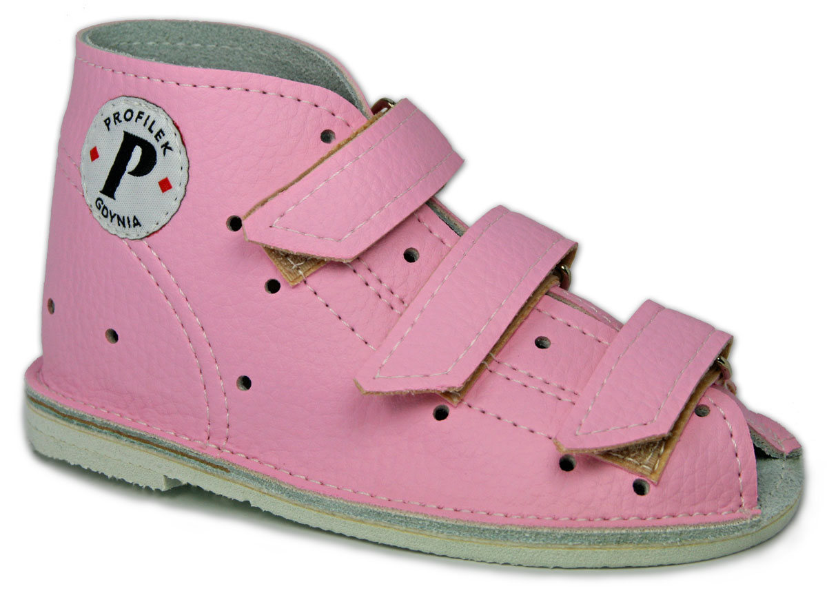 Взуття PROFILEK завдяки гнучкій нековзкій підошві, яка правильно згинається по лінії плеснових суглобів, посиленій п’яті та верху над щиколоткою, а також модифікованому каблуку Томаса (підтримує медіальний звід поздовжнього зводу стопи), утримуйте ніжку дитини в правильному положенні, запобігаючи вальгусу п'ят і колін.
