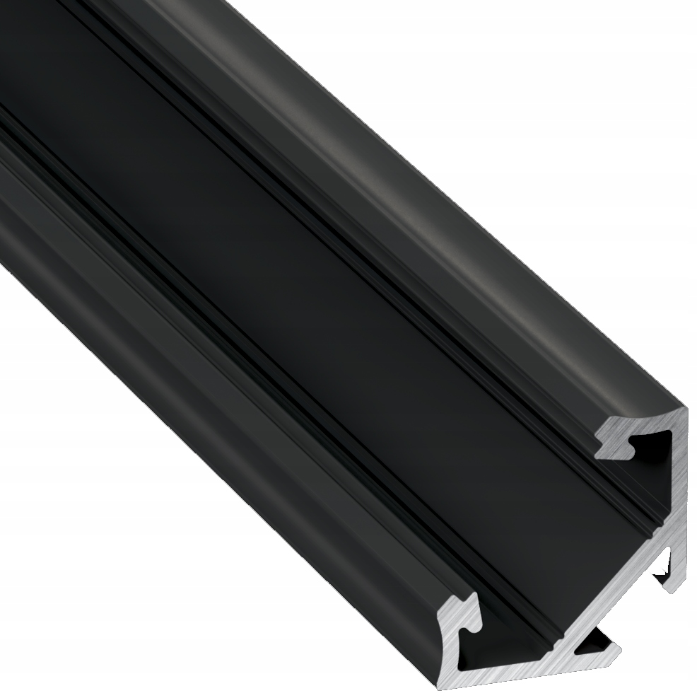 Світлодіодні алюмінієві профілі призначені для монтажу освітлення на основі світлодіодних стрічок. Поєднуючи світлодіодні стрічки та алюмінієві профілі, ми легко досягаємо професійної обробки освітлювальної установки. Чорний анодований алюміній, з якого виготовлено профіль, має ідеально гладку, естетичну поверхню, а його колір відповідає більшості проектів.