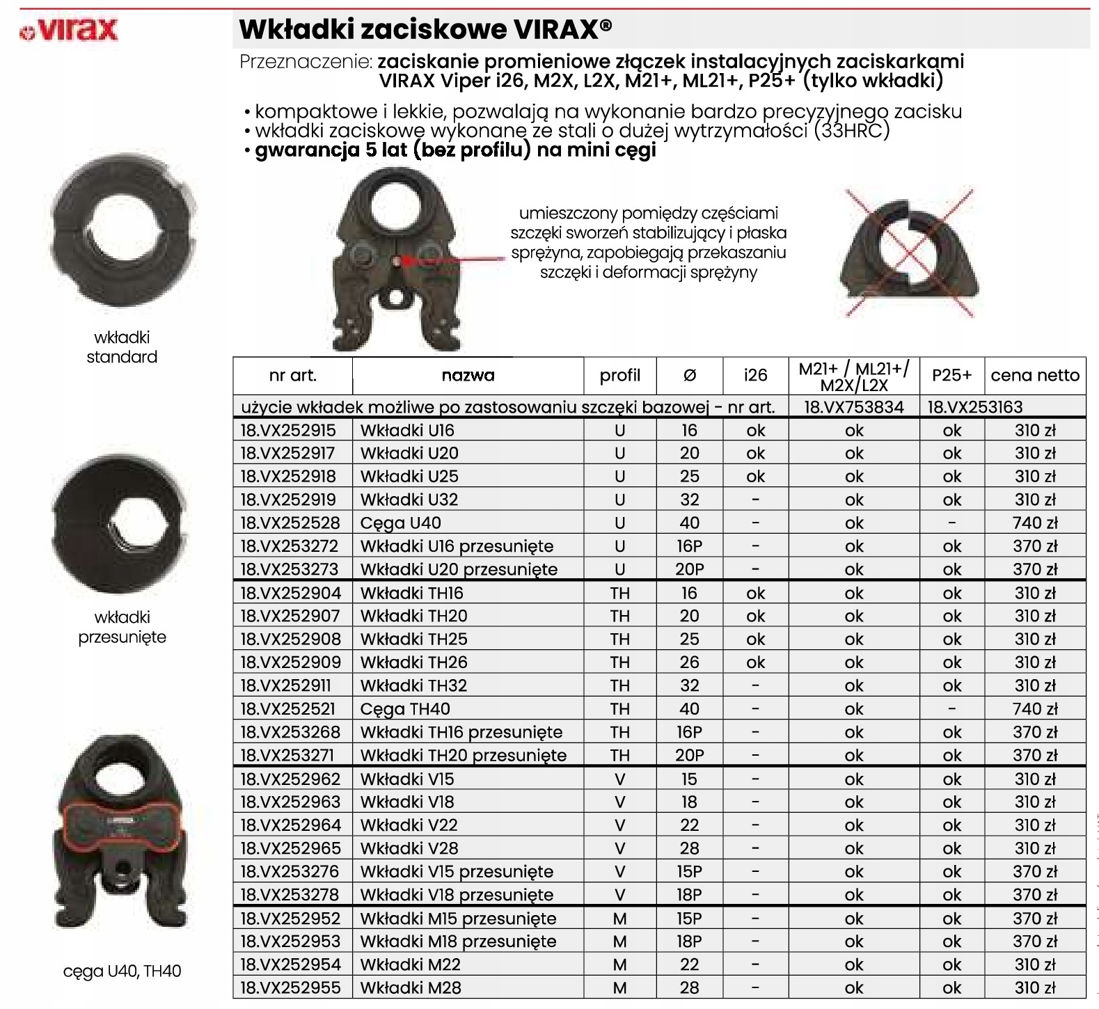 - розроблено для пресових пресів VIRAX: Viper M21+, ML21+