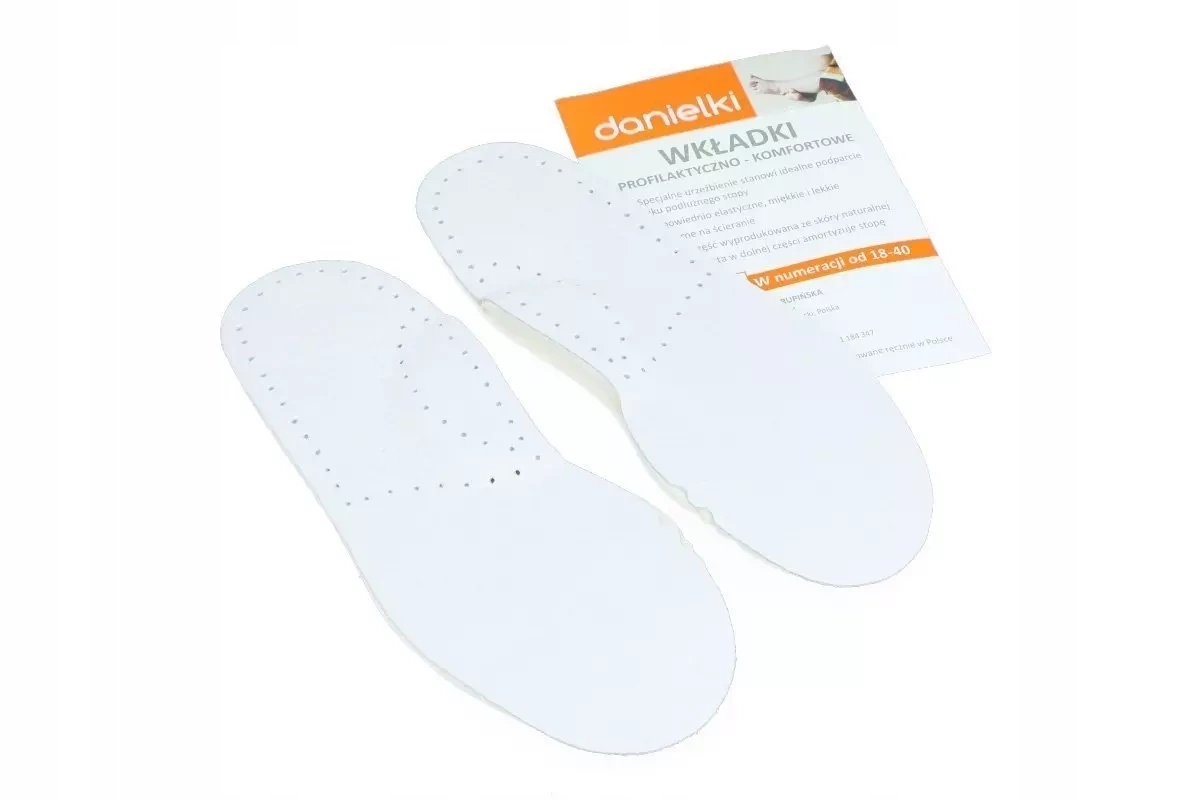 Шкіряні устілки Danielki мають профілактичні властивості та ідеально підходять для взуття тієї ж марки. Спеціально розроблена форма підтримує поздовжній звід стопи. У нижній частині устілки поролон, який амортизує стопу. Гнучкі, м'які та стійкі до стирання вставки ідеально доповнять взуття Danielka. Виготовлені з натуральної шкіри, вставки надзвичайно зручні у використанні.