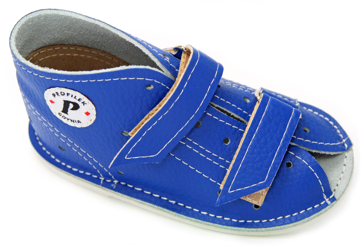 Взуття PROFILEK завдяки гнучкій нековзкій підошві, яка правильно згинається по лінії плеснових суглобів, посиленій п’яті та верху над щиколоткою, а також модифікованому каблуку Томаса (підтримує медіальний звід поздовжнього зводу стопи), утримуйте ніжку дитини в правильному положенні, запобігаючи вальгусу п'ят і колін.