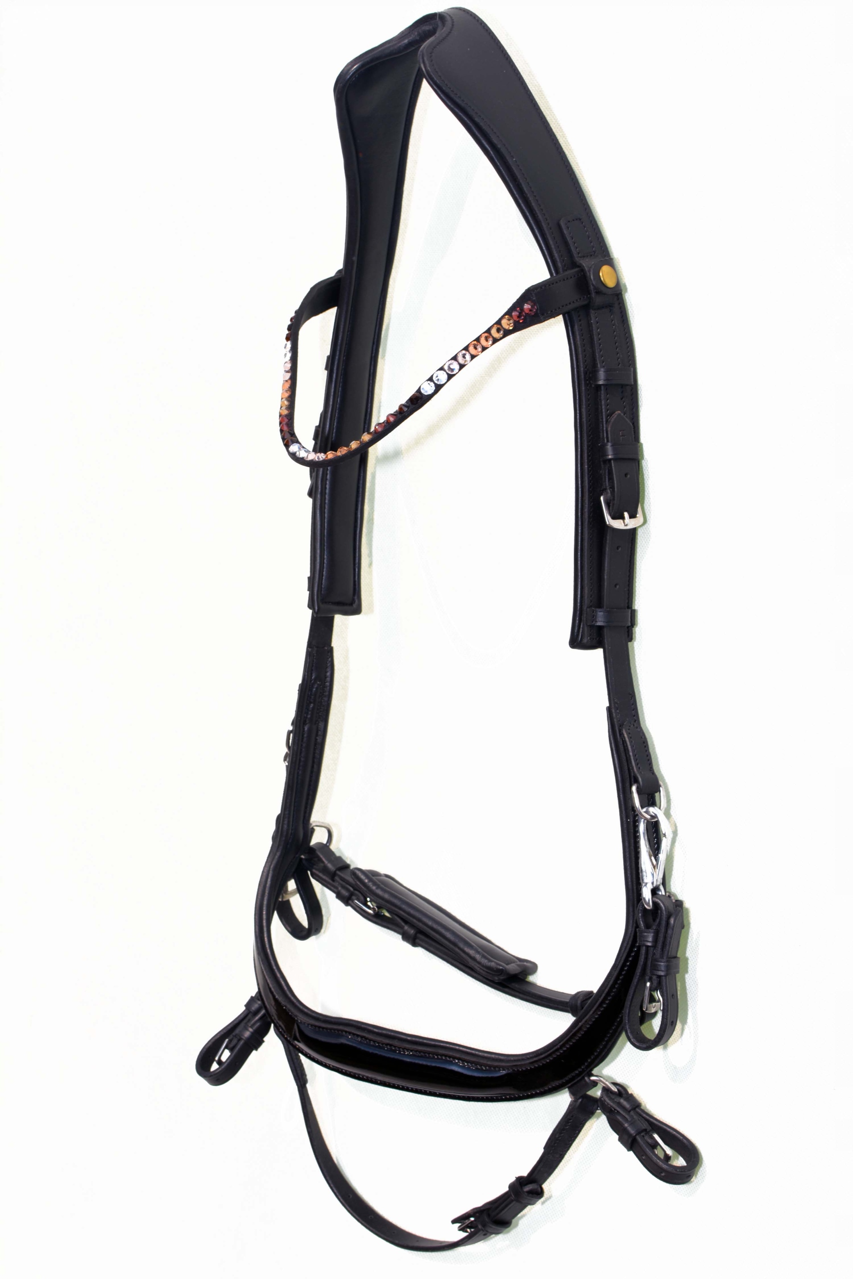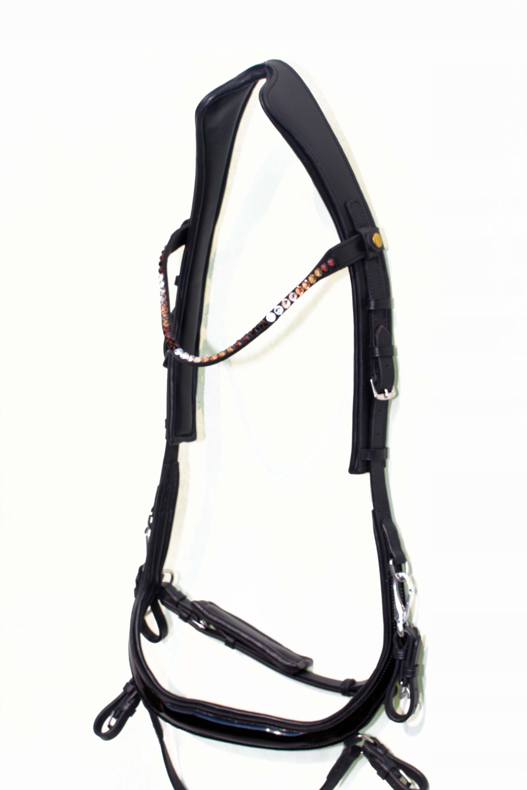 Анатомічний профільований полегшує ручку Сваровського, що виробляється у відділі Рімарського в Англії. Проводиться від найвищої якості дуже м'якого і приємного на дотик, зробленого повністю з англійської шкіри, потиличної частини та нарізаної шкіри, м'яко натерти, щоб запобігти потертостям. Закріплений і регульований. Spracks, виготовлені з дуже хорошої нержавіючої нержавіючої сталі. Не соромтеся купувати. Аукціон застосовується до оголошення, видимого на знімках.