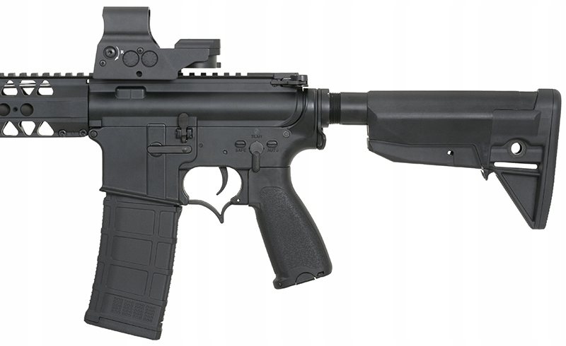 Покращена пістолетна рукоятка була розроблена зі зменшеним кутом, що значно підвищує ергономічність під час стрільби. Зменшений кут забезпечує більш природне та зручне положення руки, що забезпечує кращий контроль над зброєю. Ця інноваційна рукоятка ідеально відповідає потребам користувачів, які цінують оптимізовану ергономіку під час динамічних бойових ситуацій.