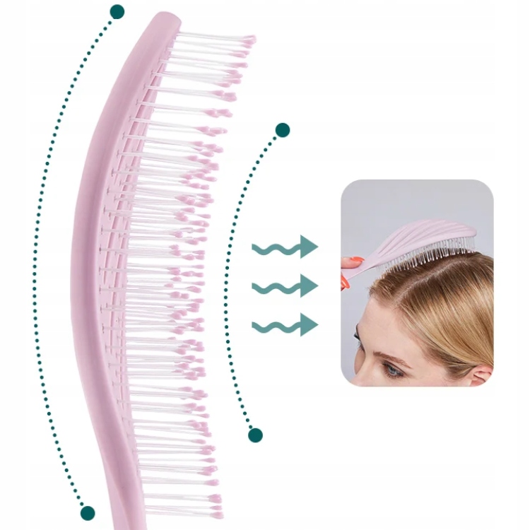 Щітка для волосся з високоякісного нековзкого матеріалу. Його структура дозволяє безболісно і акуратно розчісувати вологе і сухе волосся. Ви можете легко нанести свій улюблений кондиціонер, маску або масло і зробити розслабляючий масаж голови.