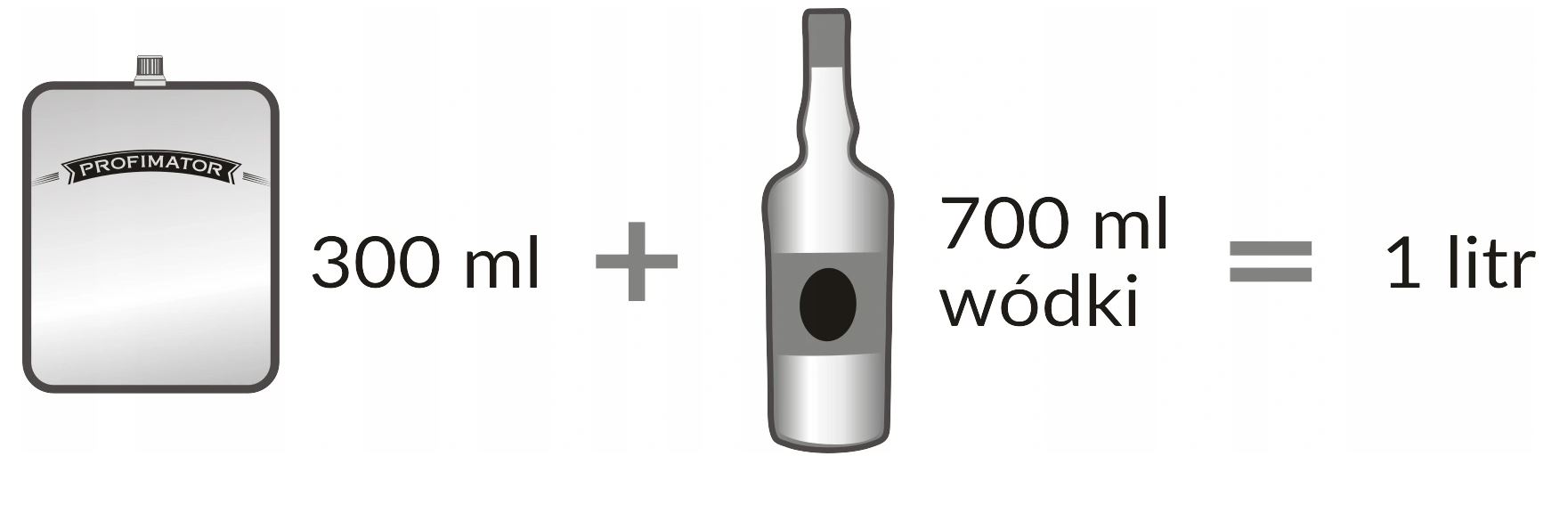 * Легка формула підготовки: 1 відтінки (300 мл), змішані з однією пляшкою горілки 0,7 л та 1 літр Смачного лікеру готового (300 + 700 = 1000)