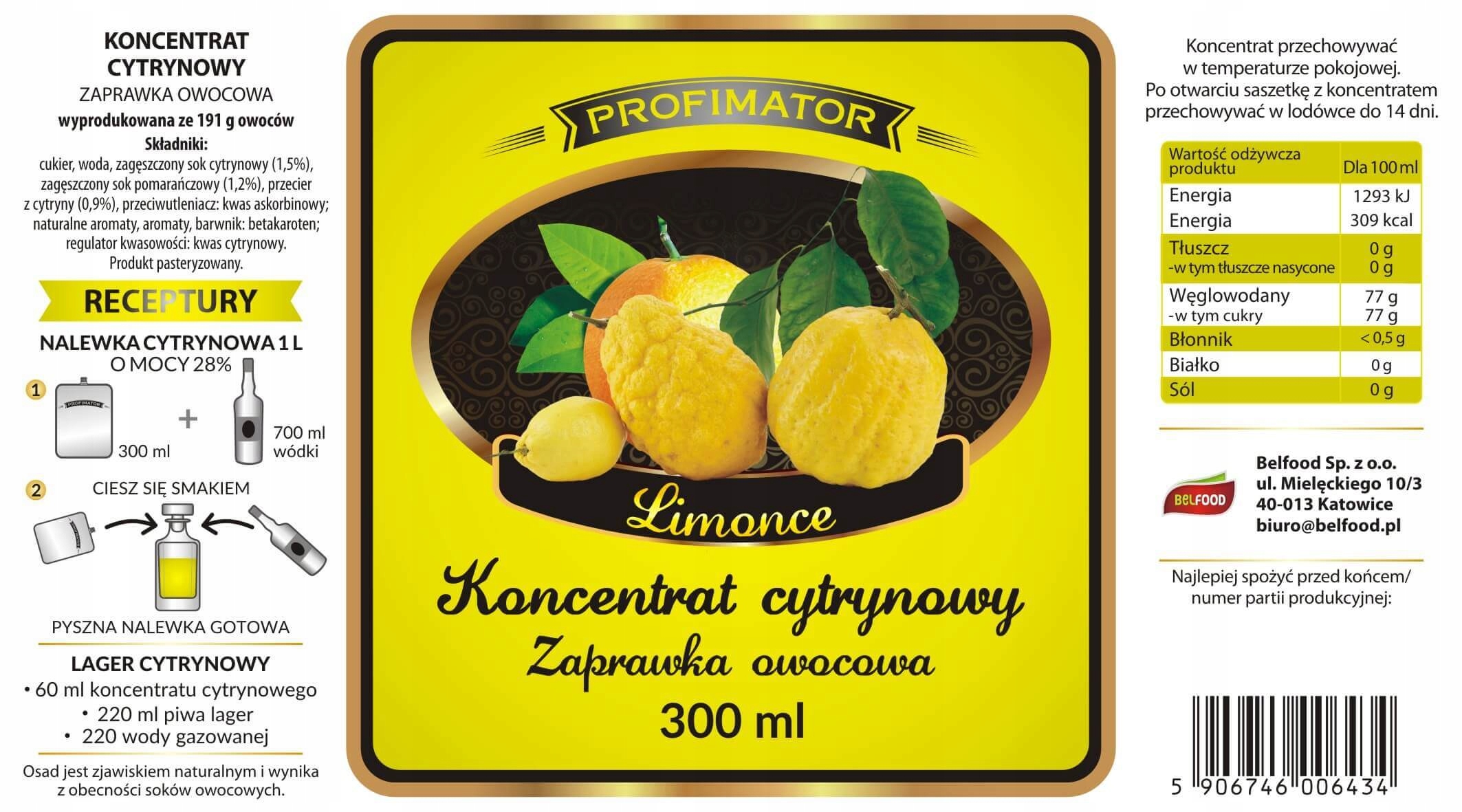 Завдяки готовому продукту ми можемо виробляти стільки, скільки 1 л настоянки з ароматом лимона . Просто поєднуйте концентрат і 700 горілки. Заключний напій матиме близько 28%.