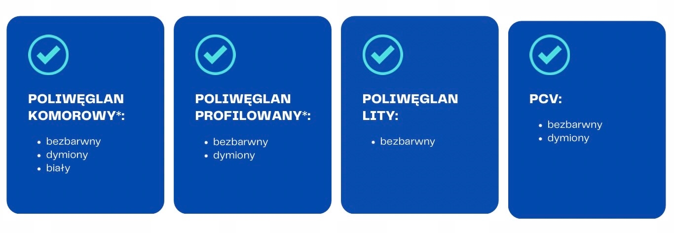 Ми також пропонуємо полікарбонатні плити інших розмірів і кольорів: