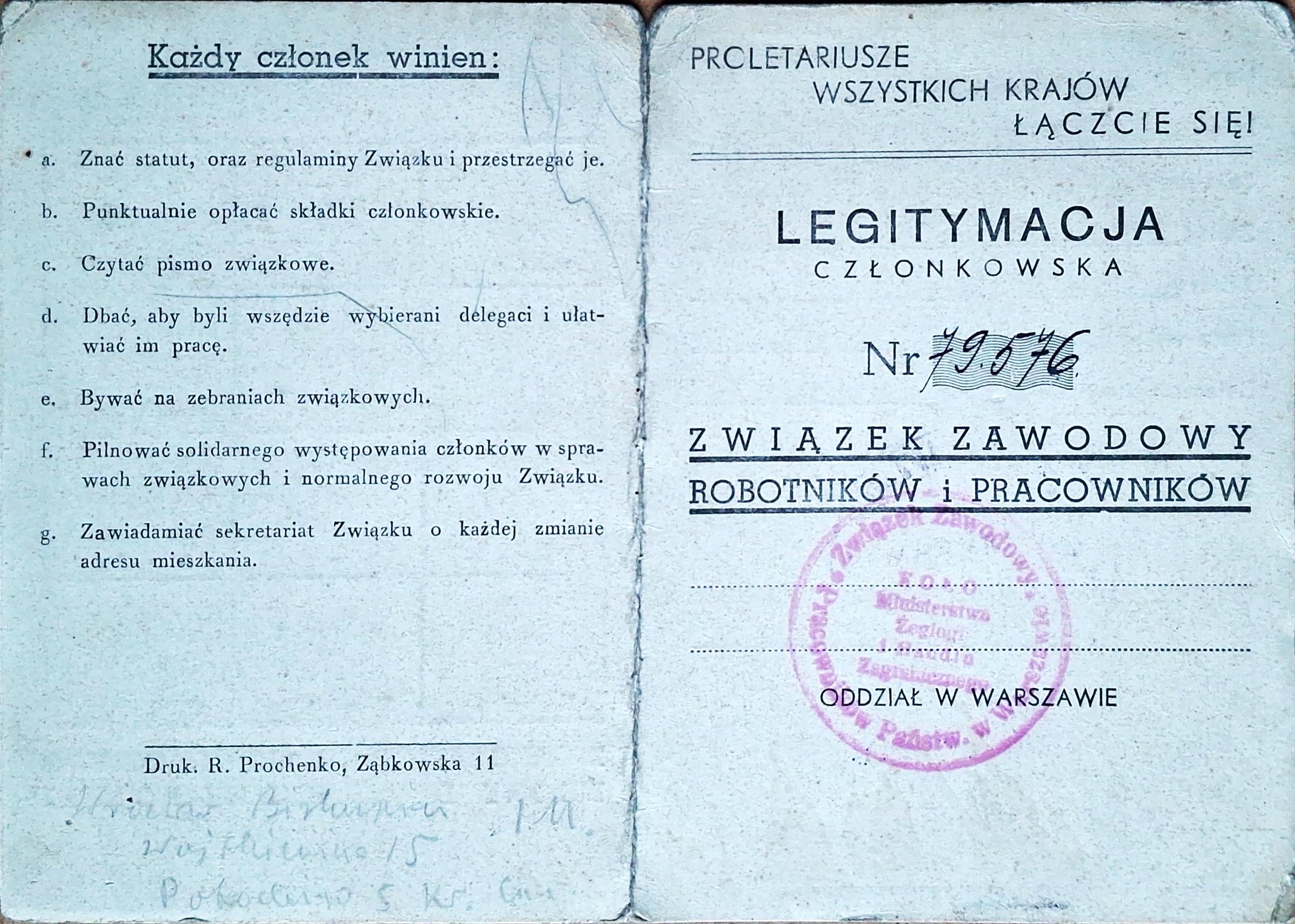 ПРОФСПІЛКА РОБІТНИКІВ ТА СЛУЖБОВЦІВ - ВАРШАВА 1945