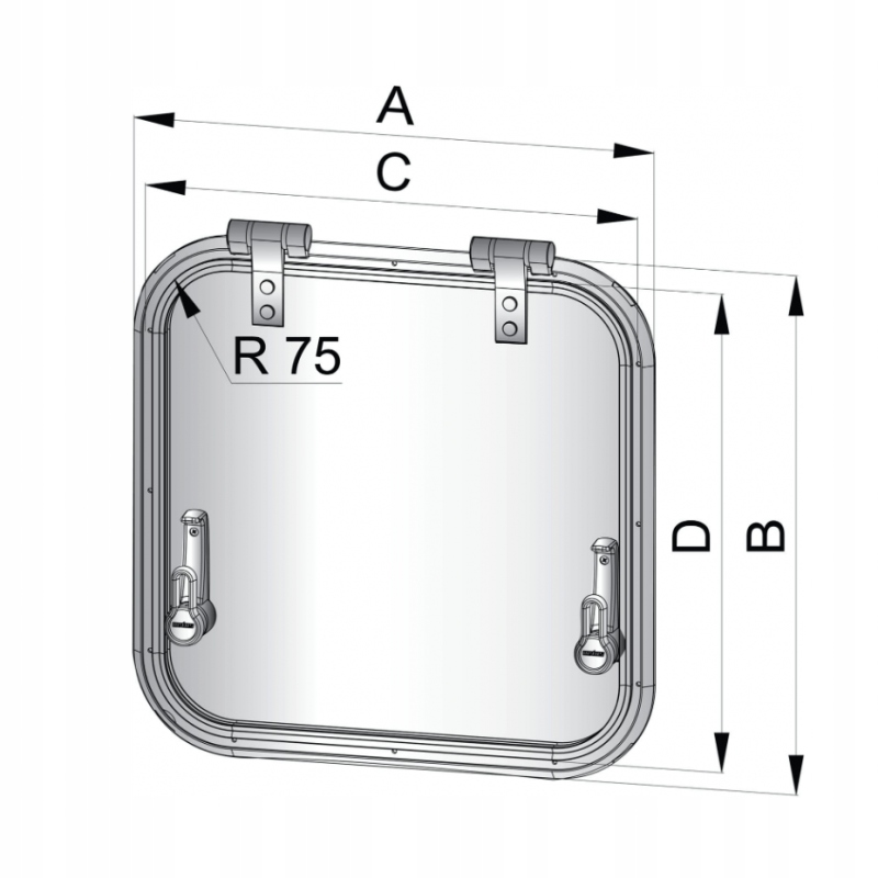 Цей люк має раму з сатинованого анодованого алюмінію з радіусом кута 75 мм і акрилову кришку «темний дим» товщиною 10 мм.