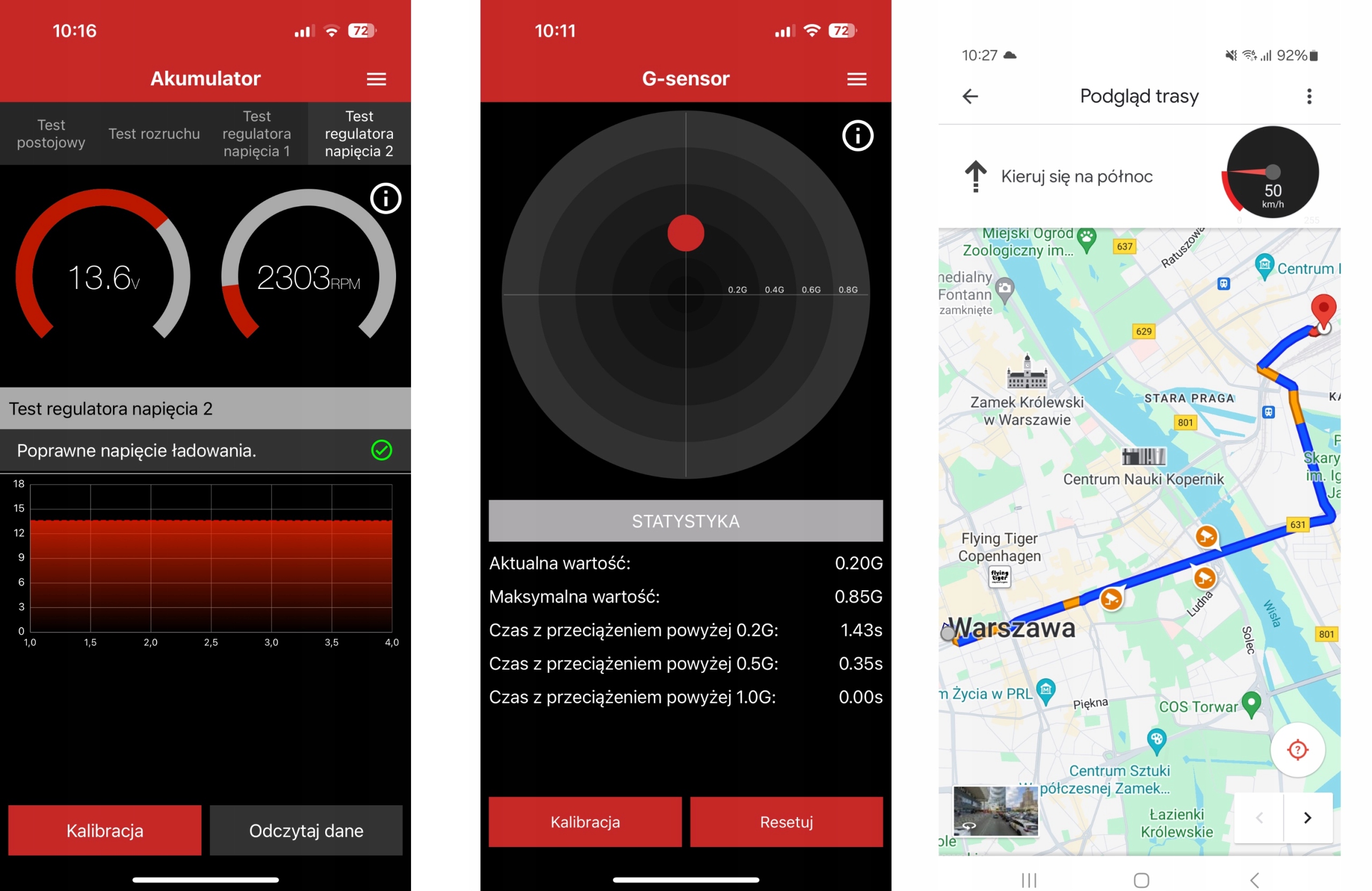 Простий моніторинг вибраних параметрів автомобіля можливий завдяки опції настроюваних годинників і діаграм. Список підтримуваних параметрів і даних тісно пов’язаний із підключеним автомобілем.