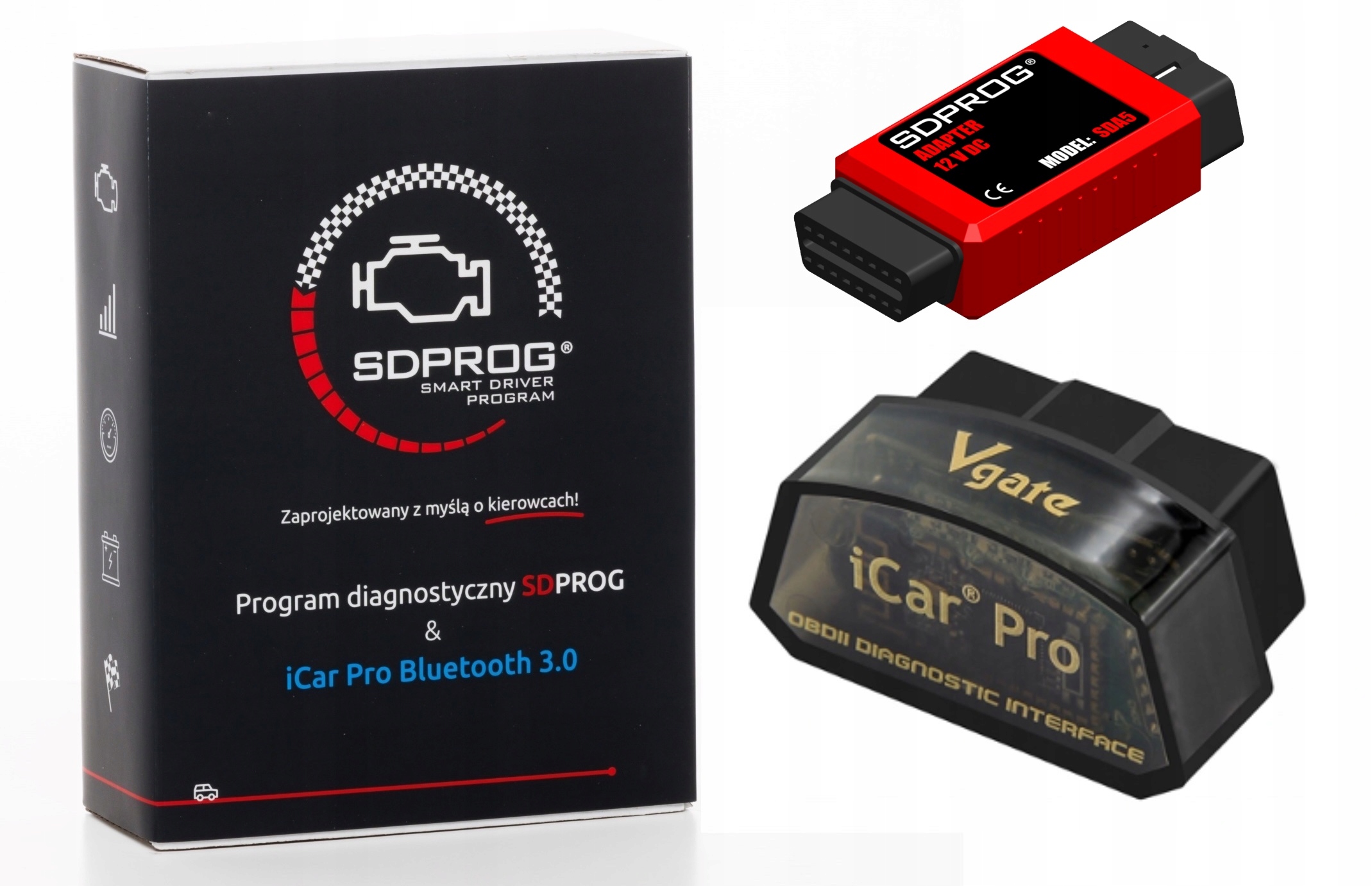 Програма діагностики автомобіля польською мовою - SDPROG + iCar PRO Bluetooth BT 3.0 ELM327 OBDII інтерфейс + адаптер SDA5