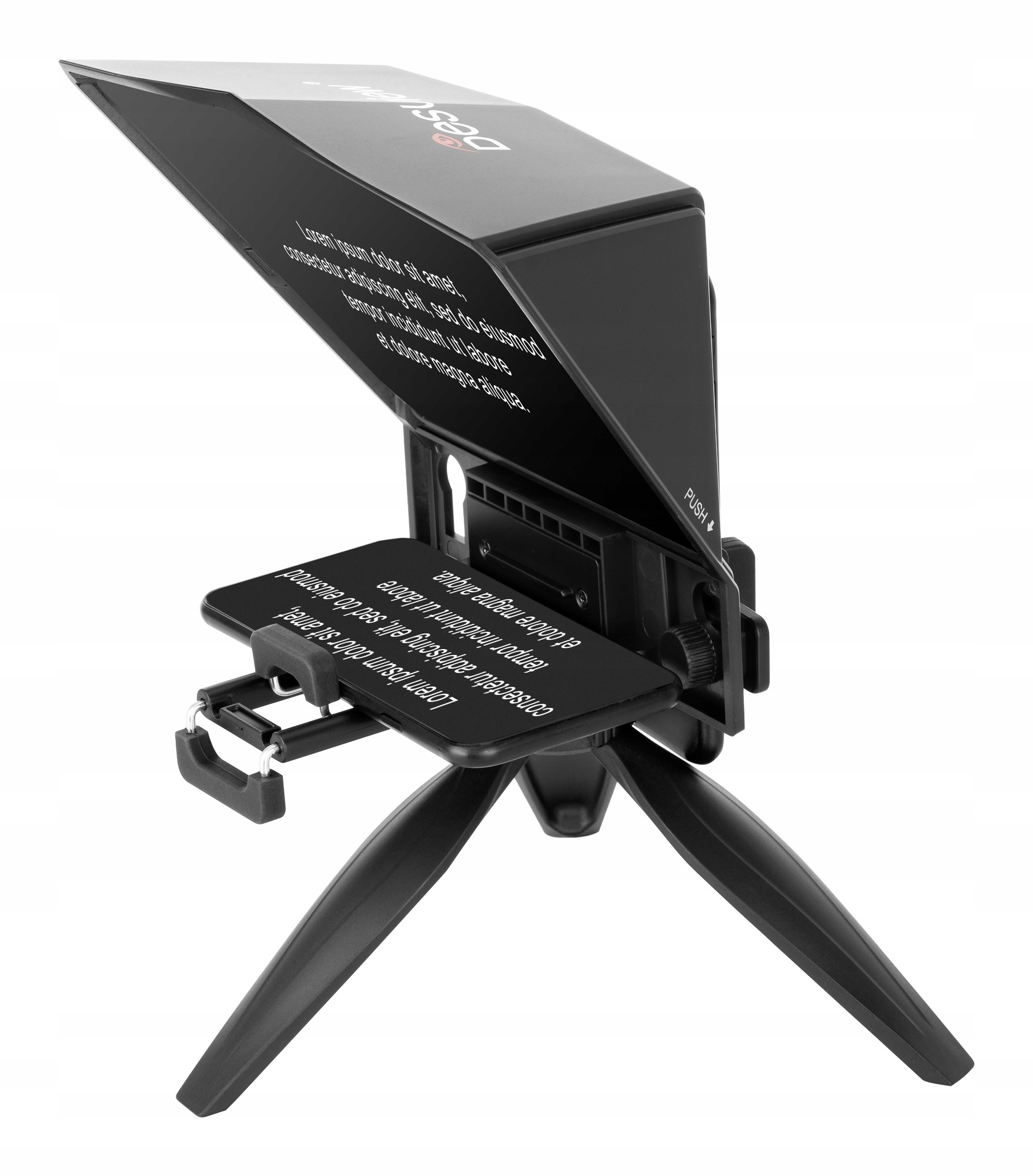 Телесуфлер Desview T2 заощадить вам багато годин, витрачених на нескінченно повторювані кадри для відеоблогів, TikToks, інтерв’ю, вебінарів, онлайн-лекцій або відео, опублікованих на YouTube. Просто встановіть смартфон або планшет з діагоналлю до 8 дюймів, завантажте безкоштовний додаток і насолоджуйтеся можливістю відображати нотатки, діалоги або цілі сценарії прямо на висоті об’єктива камери або відеокамери вашого смартфона. Більше ніяких звуків відображення, рухів очей убік і кадрів, які потім закінчуються "ляпами". Телесуфлер Desview T2 зробить ваші промови ще більш професійними, а завдяки пульту дистанційного керування Bluetooth, що входить у комплект, ви матимете повний контроль над швидкістю відображення тексту.