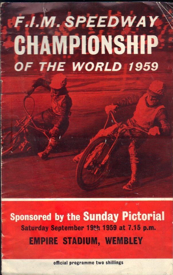 gratka для колекціонерів! Програма остаточного змагань індивідуальних чемпіонатів світу з Zużl, яка відбулася 19 вересня 1959 року на легендарному стадіоні "Вемблі" в Лондоні. Фундін або Ауб Лоусон взяв участь у змаганнях. Я з радістю надішлю додаткові фотографії.