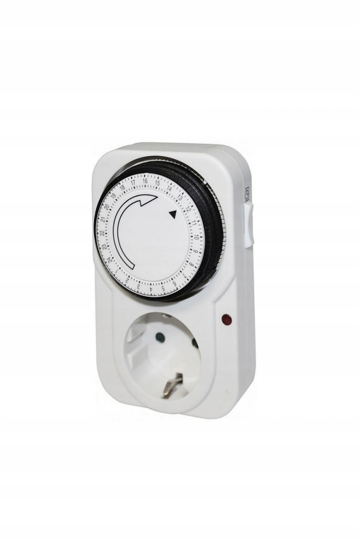 Механічний 24-годинний таймер -має механічне перемикання, тобто т.зв. годинник. Завдяки йому ми можемо встановлювати час увімкнення та вимкнення будь-яких електроприладів.