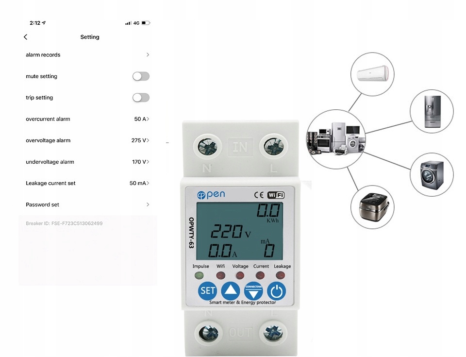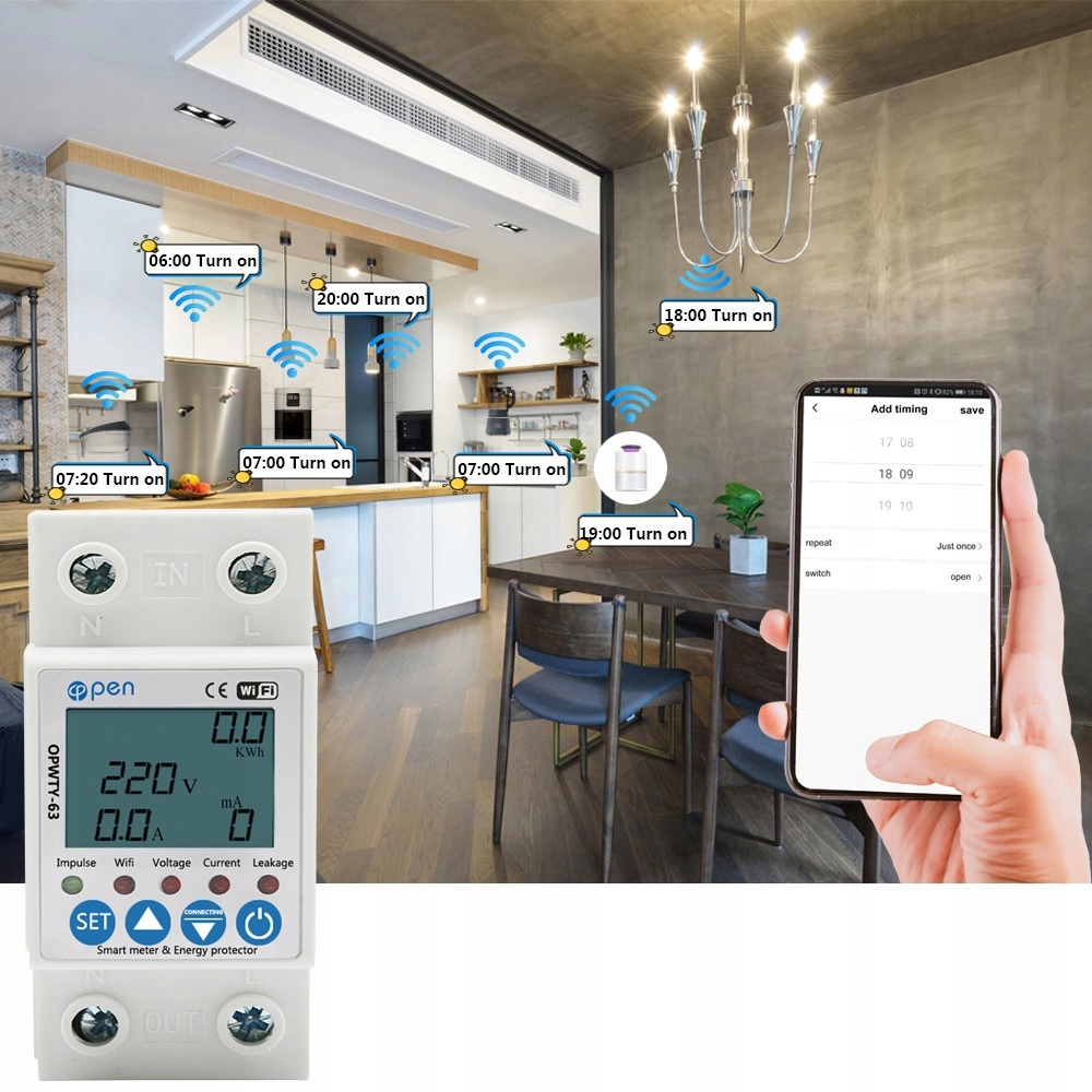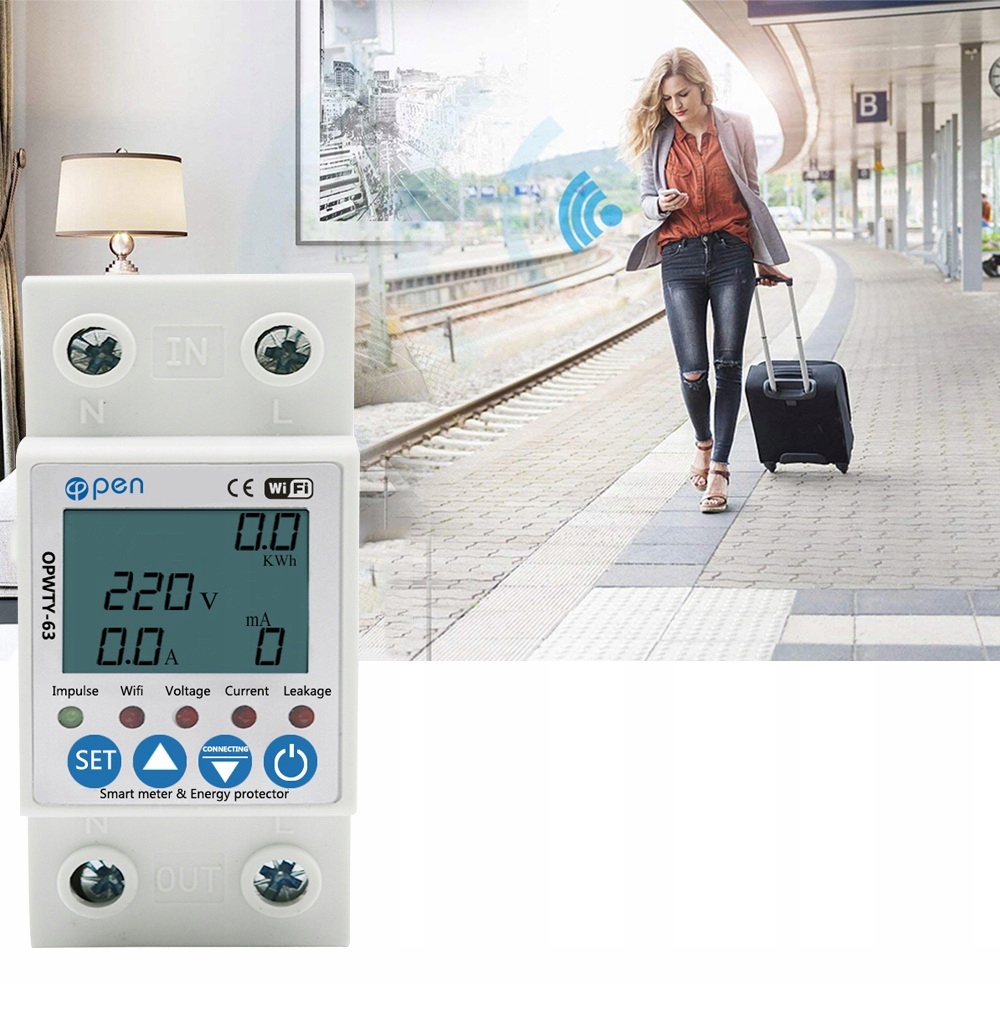 Програматор часу Лічильник кВт/год Ваттметр SMART TUYA WiFi 63A