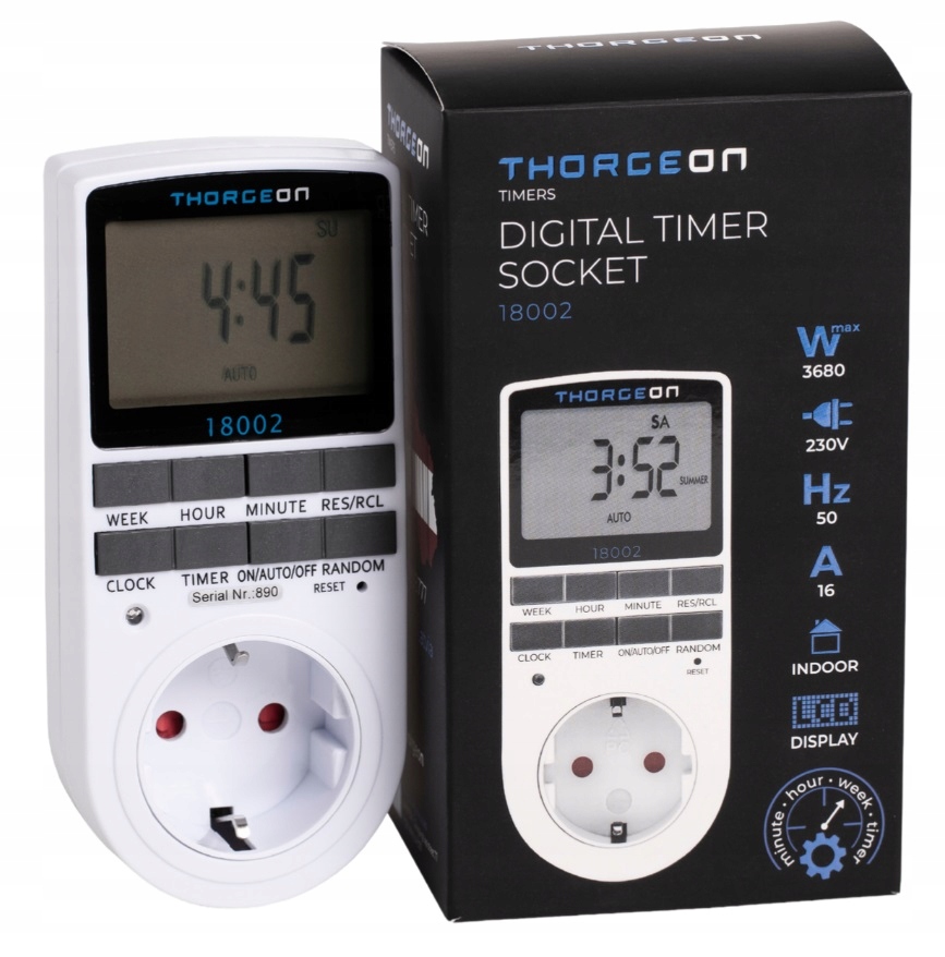Програміст часу Thorgeon Tymer Timer LCD 24/7H 16A 3680W перемикач