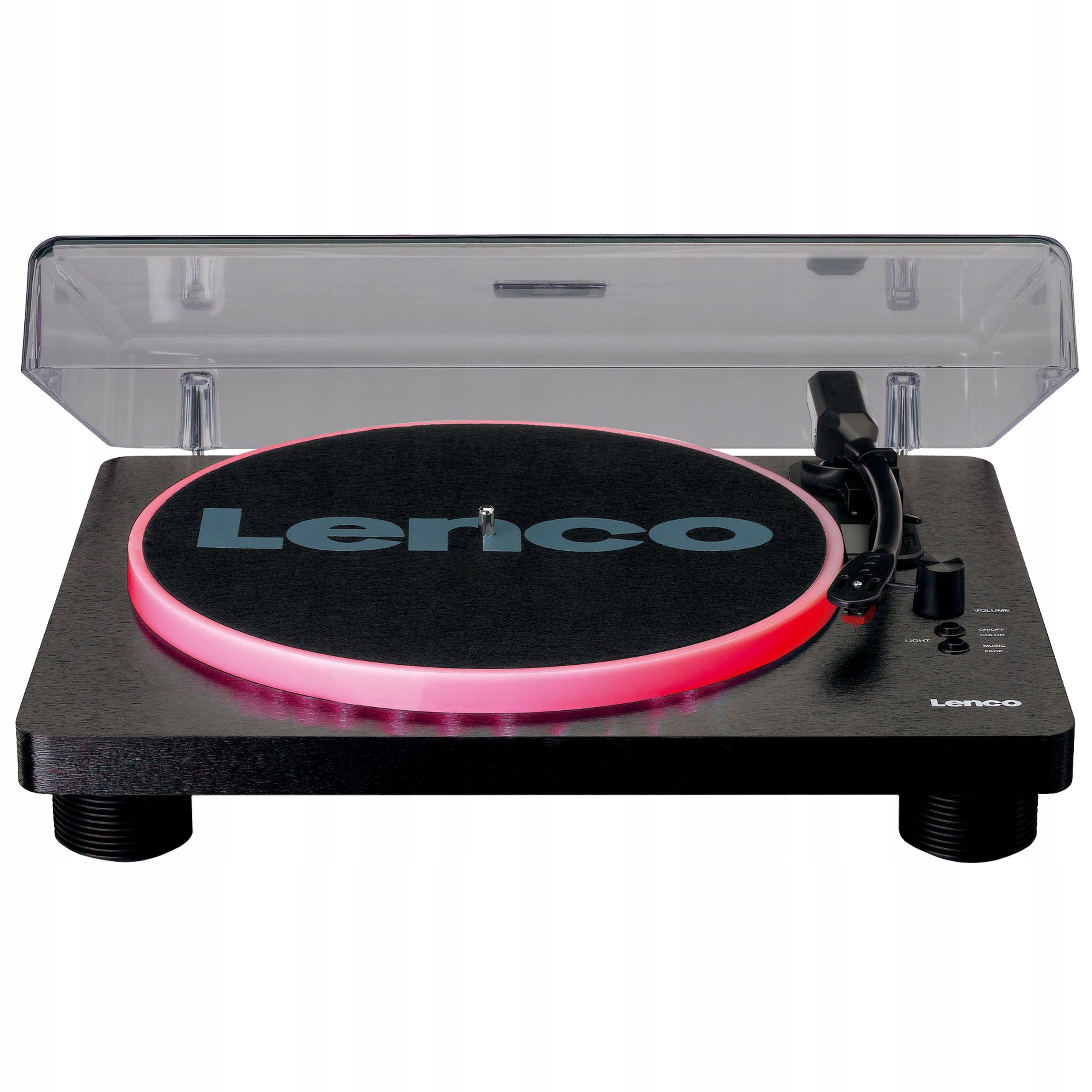 Програвач Lenco LS-50LEDBLK має унікальне кольорове світлодіодне підсвічування пластини, яке може змінювати колір відповідно до ритму музики, автоматично зникати та постійно підсвічувати тарілку вибраним кольором або бути вимкненою.