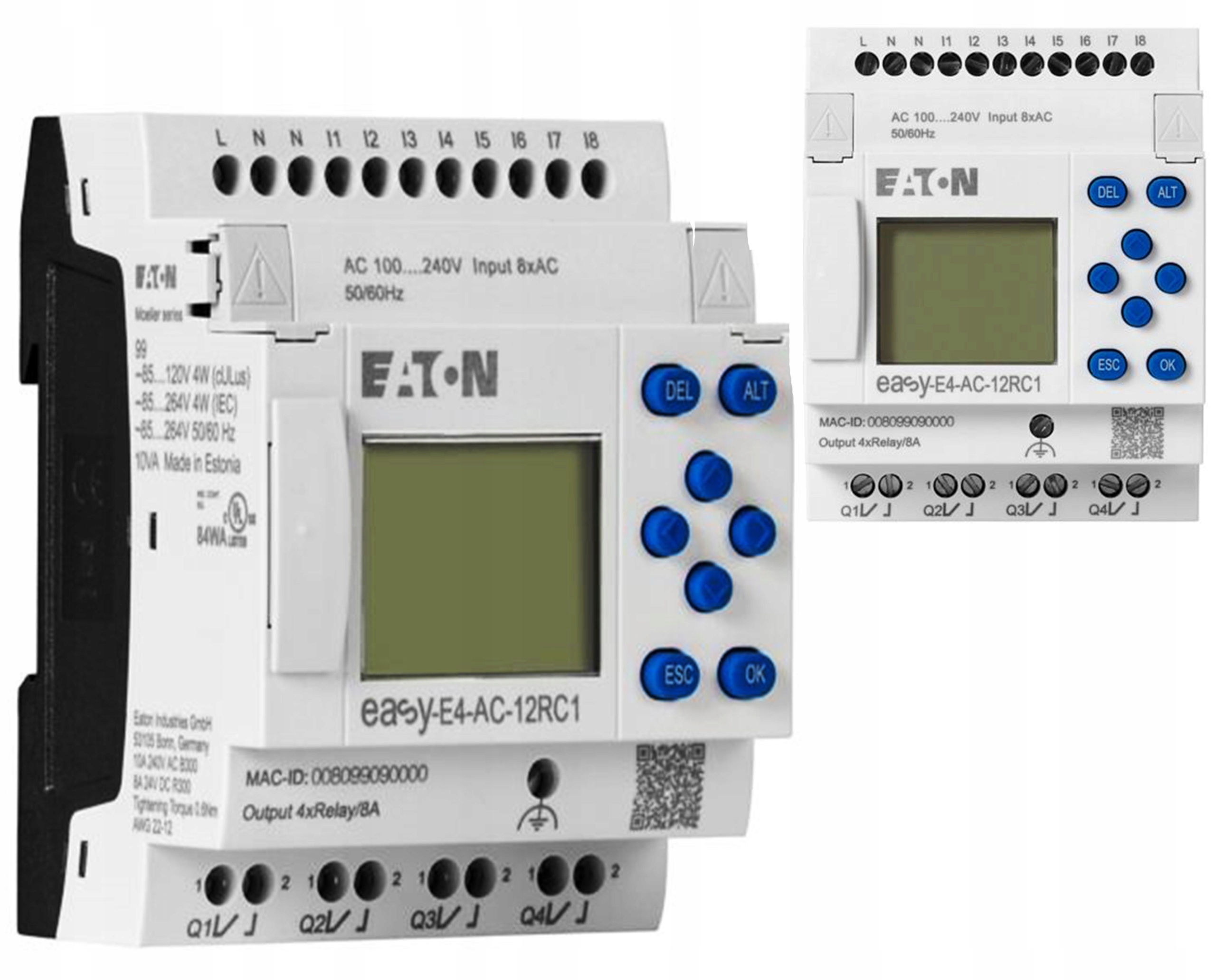 | EASY-E4-AC-12RC1 | easyE4 | easyE4 | 24 В змінного струму | 8DI(4AI) | 4DO-R |