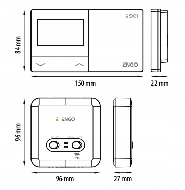 e901rf - це поверхневий, щотижневий регулятор кімнати, що використовується для бездротового управління пристроями та системами опалення або охолодження. температура.