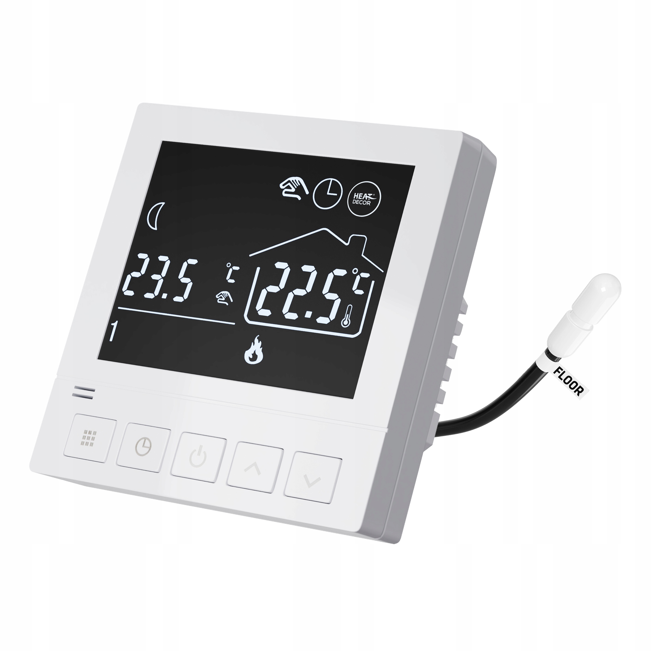Ручний дротовий термостат із РК-дисплеєм, призначений для керування електричною підлогою з підігрівом або електричними радіаторами. Термостат оснащений вбудованим датчиком температури повітря та дротовим датчиком температури підлоги NTC. Інтуїтивно зрозуміле програмування кімнатної температури (5+2) або ручне керування. Використовується для теплої підлоги, нагрівальної плівки, нагрівальних панелей, нагрівальних матів.