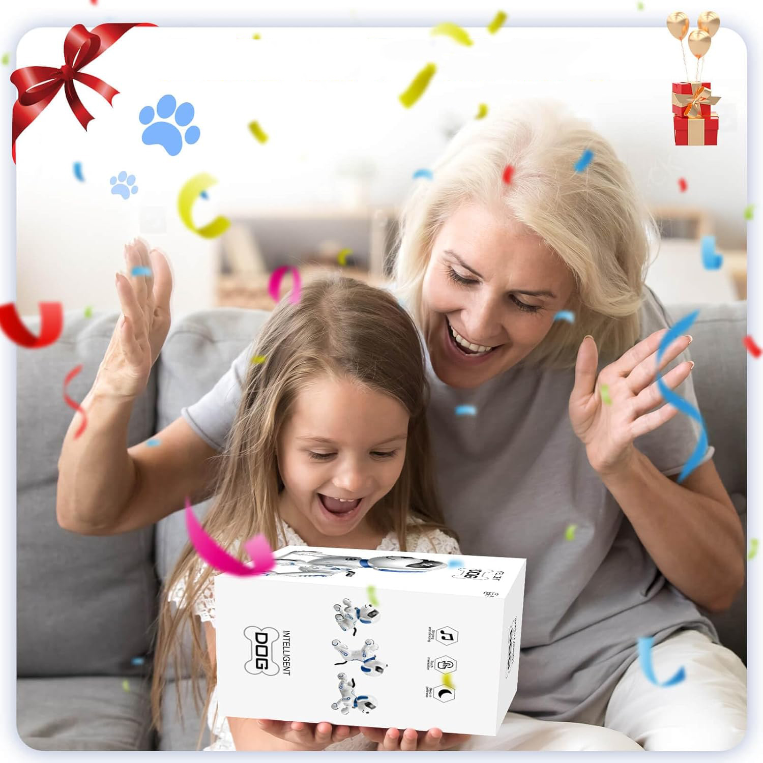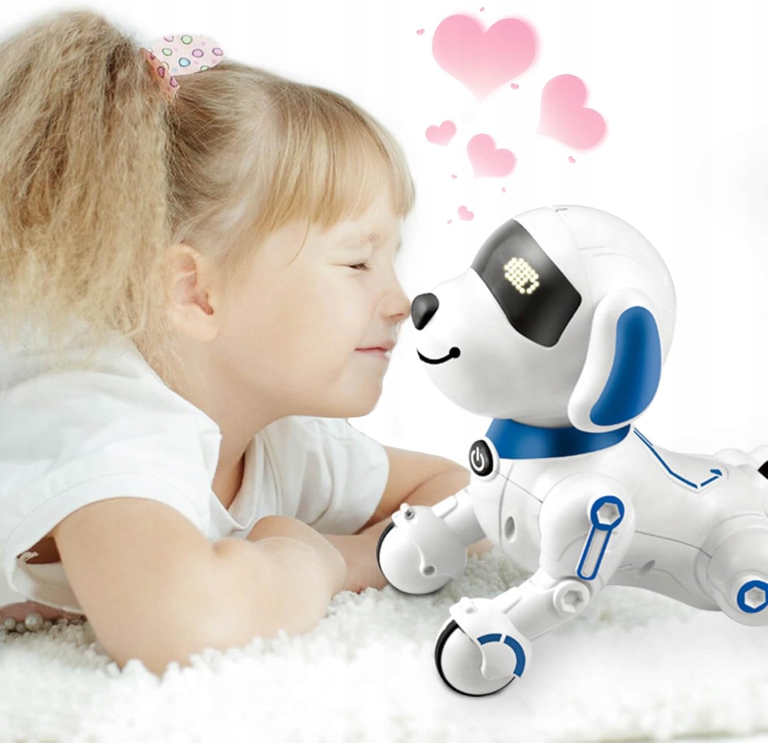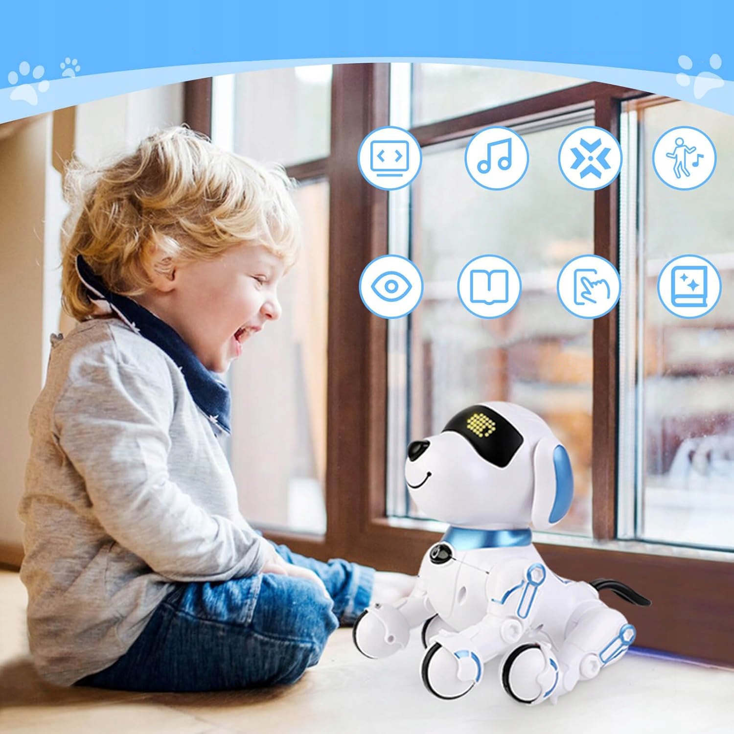 -Наш розумний собака-робот-це багатофункціональний супутник науки, який може розповідати історії, співати дитячі рими, танцювати, викладати англійську мову та наслідувати 6 різних звуків тварин, що надає дітям різні освітні та розважальні враження. Дитина може вільно запрограмувати собачку-робо, щоб здійснити низку заходів.