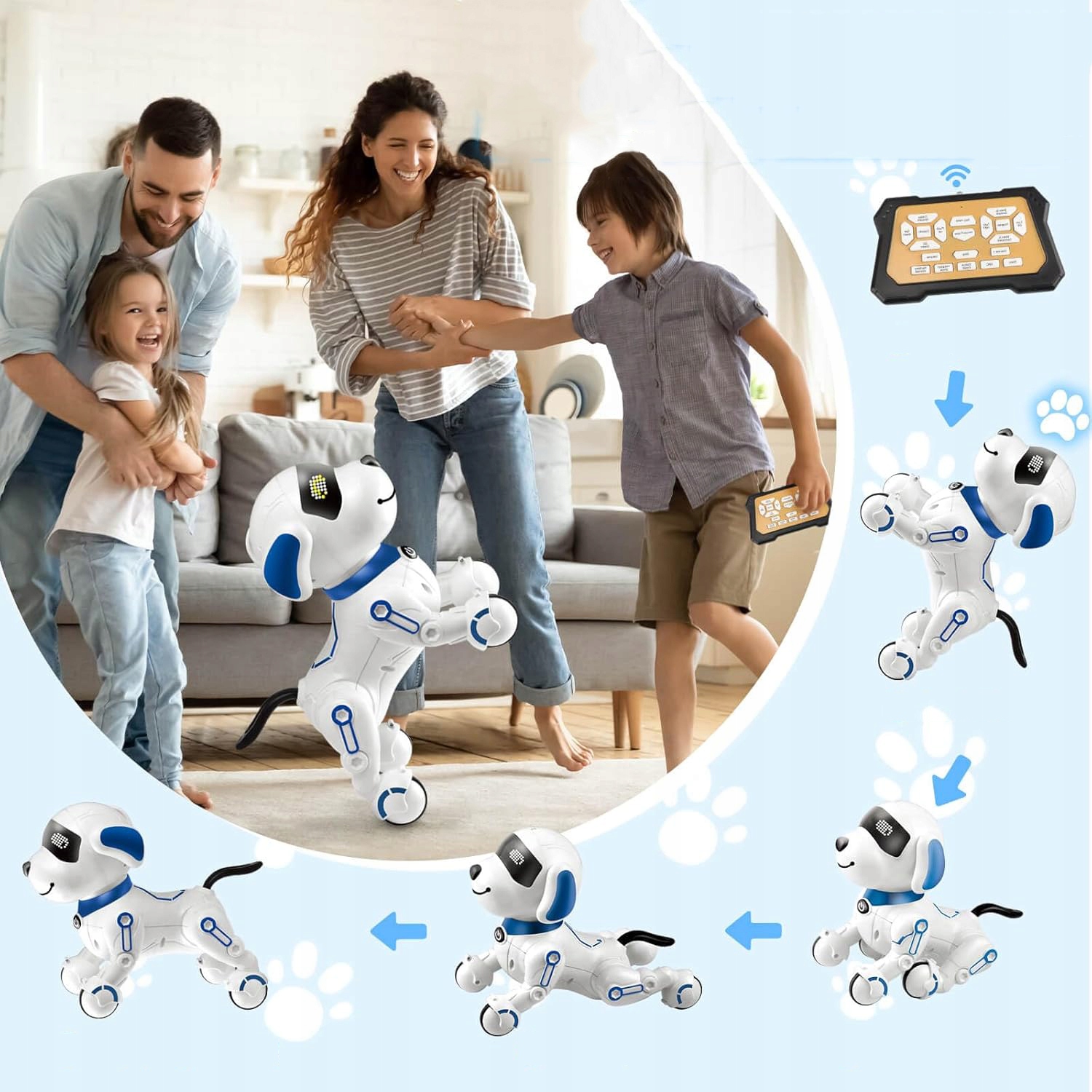 ression 【Інтелектуальна собака-робоча】: може розповідати історії, співати дитячі рими, танцювати, викладати, викладати англійську мову та наслідувати 6 різних звуків тварин. Всі заходи можна контролювати за допомогою водіїв. Це чудовий віддалений подарунок для дитячої собаки