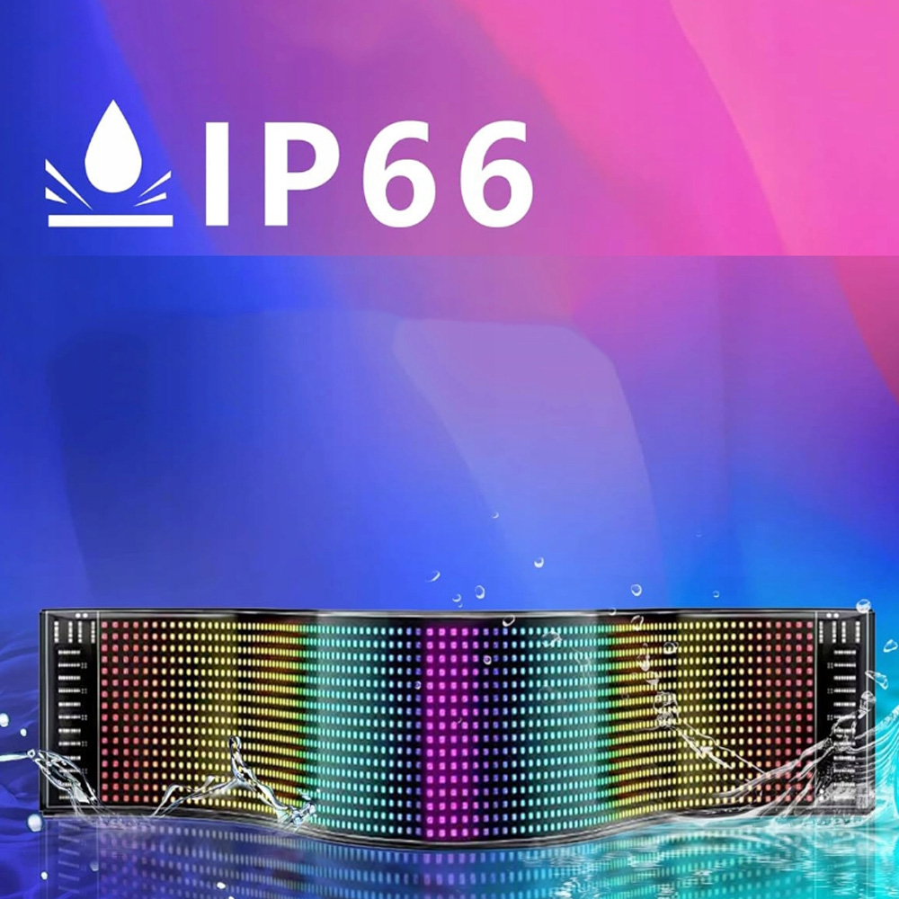 Повнокольоровий (RGB) світлодіодний екран із 16 x 64 пікселями - надзвичайно яскравий; Підтримує прокручування. Легко покажіть людям ефект реклами за допомогою цієї прокручуваної світлодіодної вивіски. Шаблони чіткі, способи відображення універсальні; Водонепроникність за стандартом IP66 – на поверхню світлодіодної матриці додано колоїдну смолу для кращого захисту кульок лампи.