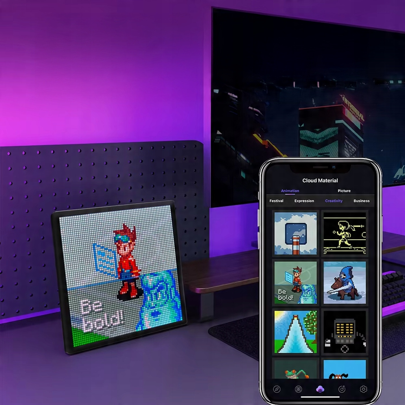 Багатофункціональний пристрій, який буде працювати вдома, офіс або на різних заходах . Ви можете використовувати його для відображення інформації, такої як погода, температура або графік дня. Він також чудово підходить для творчих розваг - Дизайн Pixel Art Animations and Images або використовувати готову графіку інших художників. зустрічі.