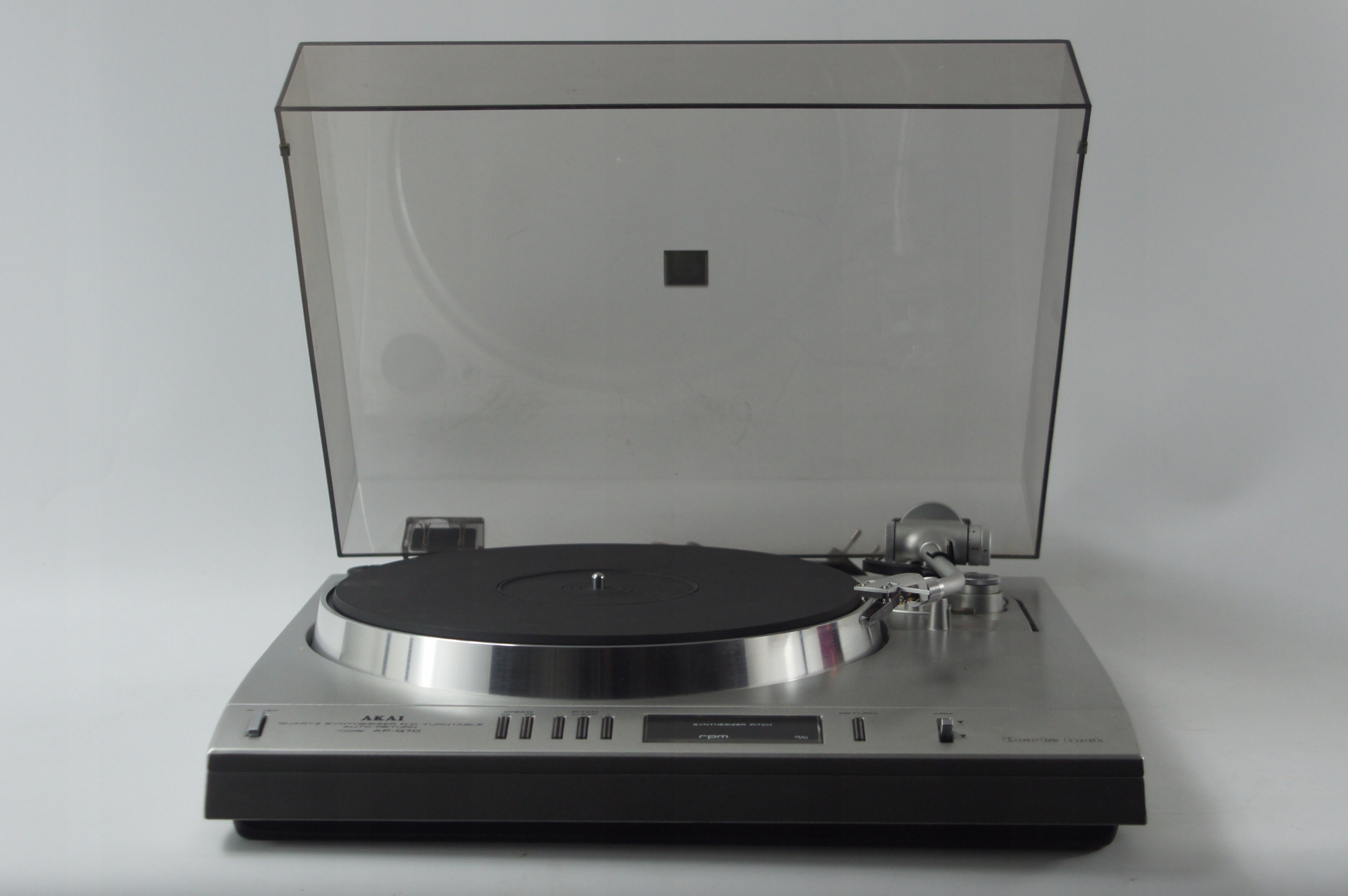 AKAI AP-Q70– це висококласний напівавтоматичний програвач на основі кварцової механіки, який цінується за надійність і якість виготовлення. Завдяки прямому приводу і точному кронштейну він пропонує чистий і стабільний звук з вінілових платівок з підтримкою висококласної напівавтоматичної механіки, яка дозволяє завершити сеанс прослуховування за допомогою перемикачів на передній панелі. Завдяки вбудованому стробоскопу можна контролювати та коригувати обертання пластини.