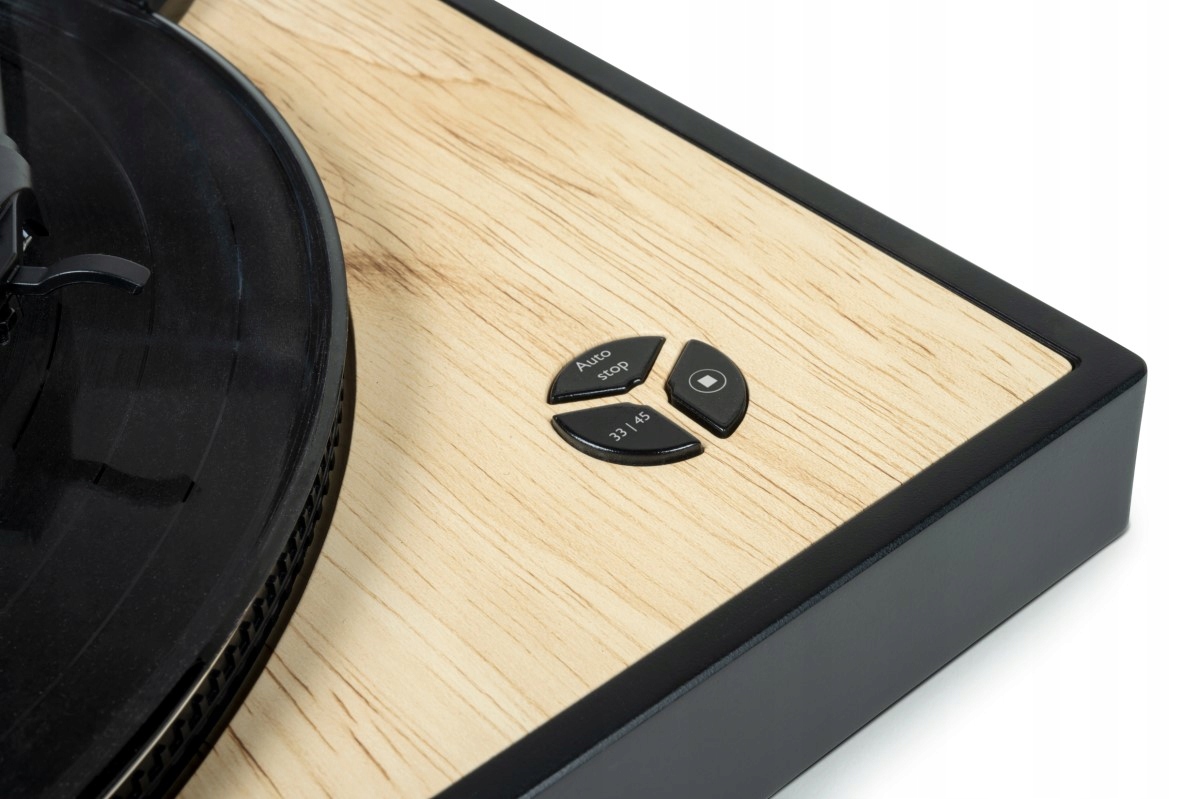 Цей відмінний вертушок з простим дизайном ідеально вписується в сучасний інтер’єр. Дерев’яний верх надає йому сучасний і теплий вигляд. Підсилювач поворотного столу може бути підключений до будь -якого звукового репродуктивного пристрою. Якість звуку забезпечується високоякісною зміною аудіотехніки AT3600L.