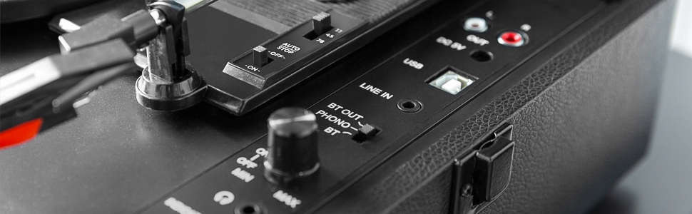 Швидкість цього програвача платівок можна регулювати в 3 кроки (33⅓, 45 і 78 об/хв), тож ви можете відтворювати як платівки, так і сингли та старі платівки зі швидкістю 78 об/хв. Для одинаків у комплект входить адаптер для заповнення великого отвору в центрі. Щоб запобігти нескінченному обертанню вертушки, є функція автоматичної зупинки, яка зупиняє вертушки в кінці запису. Це запобігає непотрібному зносу голки.