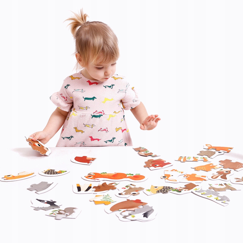 Ліс давайте гуляти до лісу! Чарівні тварини запрошують вас грати з все більш складними головоломок! Крок 3: Головоломка з все більшою кількістю елементів. У коробці ви знайдете 9 головоломок різних елементів: 2, 3, 4, 5 і 6. Це чудова ідея для перших багатоелетових головоломок для початківців. Вони працюють фантастично вдома, під час подорожі та спільної гри розвиває невеликі рухові навички та уява