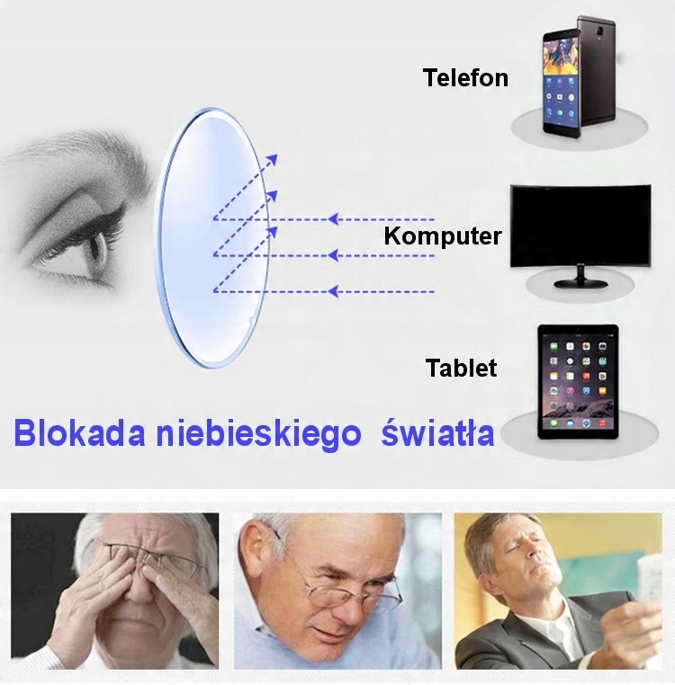 Лінзи з антибліковим покриттям фільтра синього світла нейтралізує надлишок синього світла та усуває відблиски, підвищуючи комфорт роботи перед РК/світлодіодними екранами.