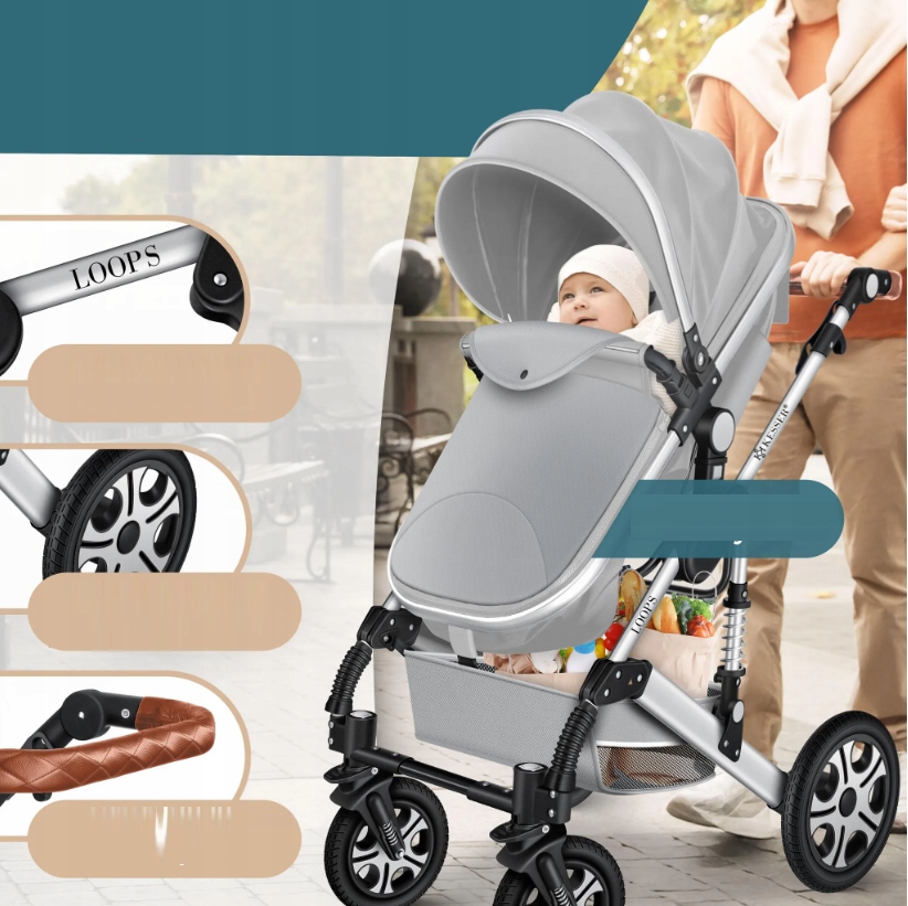 Прогулянкова коляска KESSER Loops 4 в 1 сіра від 0 до 4 років
