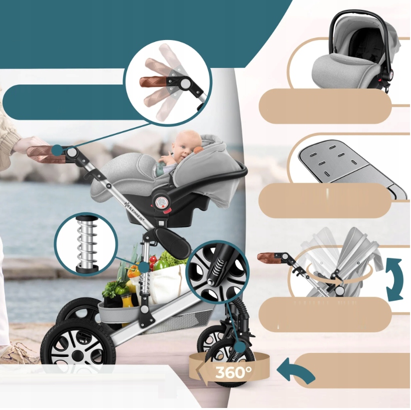 ✅ Набір 4 в 1 - в комплекті гондола, спортивне сидіння, автокрісло та сумка для підгузників