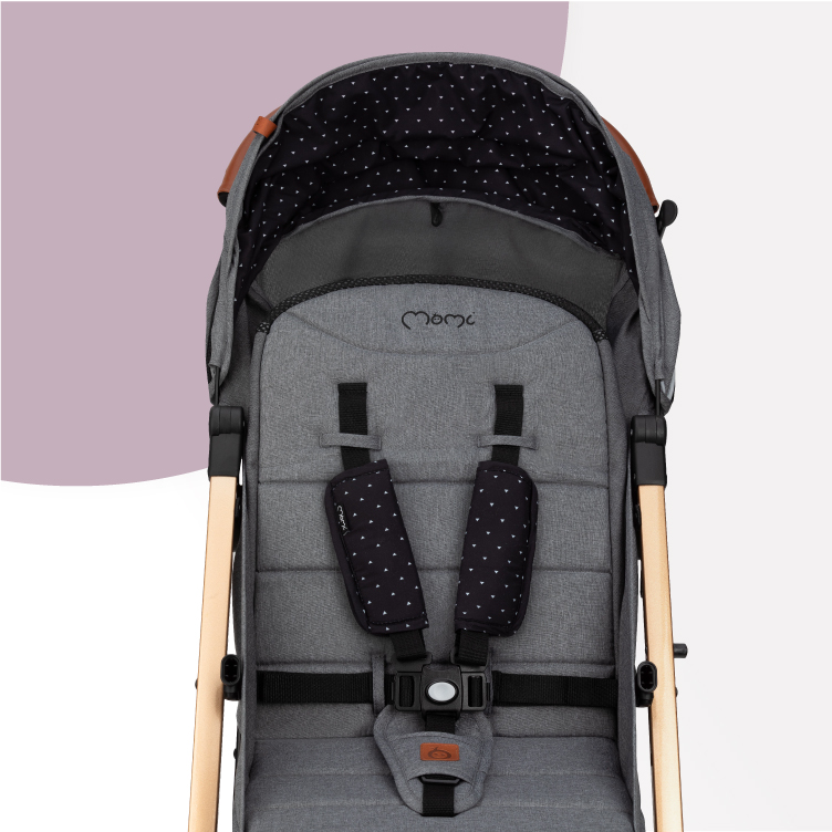 Які в нього ремені безпеки? Це надзвичайно важливо! Батьки повинні не забувати застібати їх кожного разу, коли вирушають на прогулянку. Безпека вашої дитини є пріоритетом MoMi, тому ESTELLE має 5-точкові ремені безпеки.