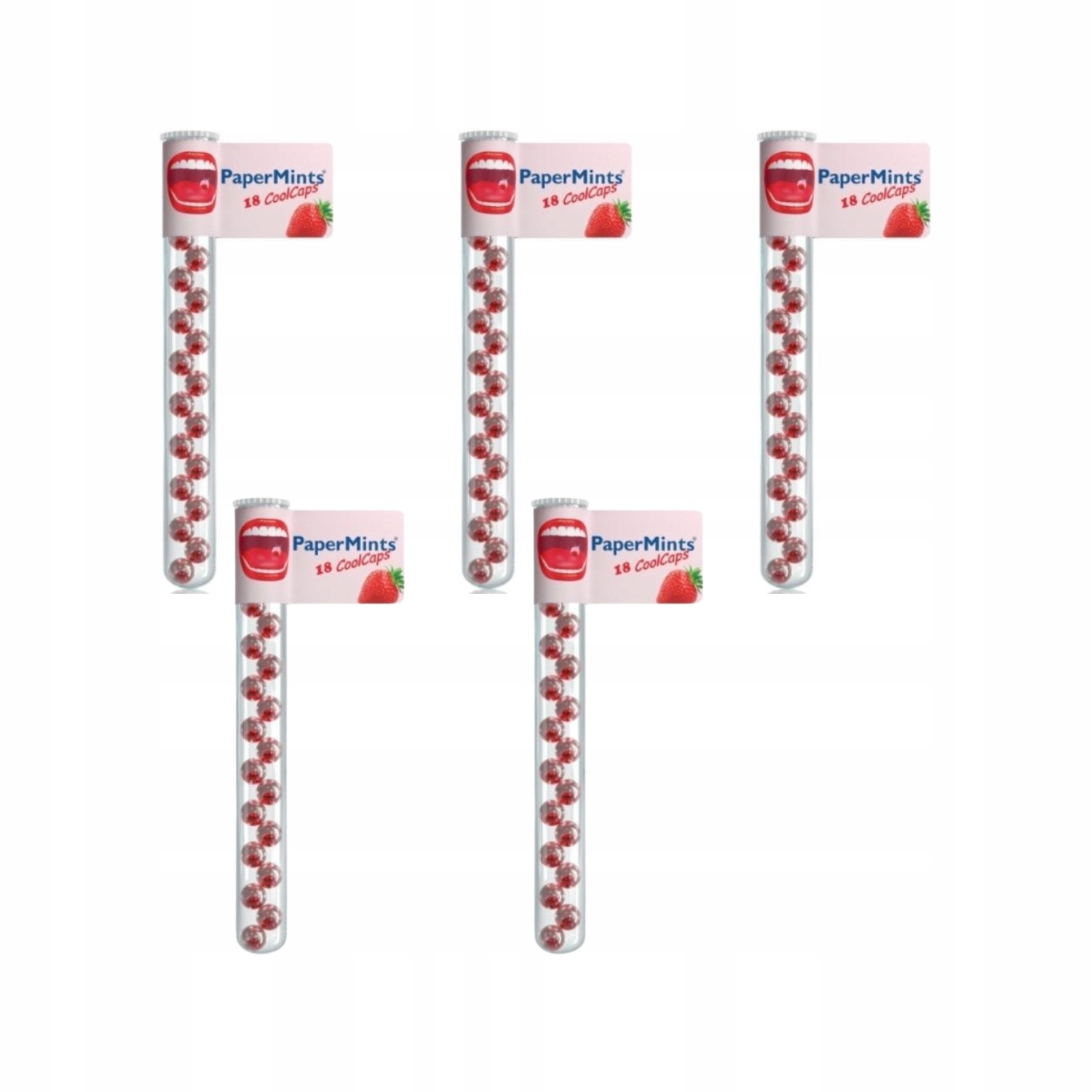 Cool Caps-це інноваційна капсула, що містить дві рідкі полуничні інгредієнти. У першій фазі, після розчинення в роті, капсула забезпечує дуже сильне і довге відчуття свіжості. Проковтування внутрішньої капсули викликає відчуття тривалого свіжого дихання з шлунково -кишкового тракту та шлунка.