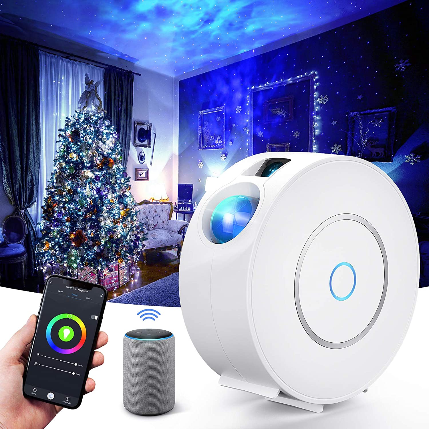 Цей простий у використанні та сучасний зірковий проектор ідеально підходить як пристрій для створення чудової атмосфери під час звичайних зустрічей з друзями чи під час вечірки, або навіть для того, щоб приспати дитину, створивши в кімнаті красиву галактичну туманність . Керується за допомогою безкоштовної програми Tuya Smart або Smart Life, доступної для завантаження на будь-який телефон, на Android і iOS . Проектор працює з Amazon Alexa та Google Home. Легке сполучення пристрою з програмою, просто підключіться до WIFI 2.4G на телефоні та ввімкніть Bluetooth, щоб автоматично з’єднати проектор із телефоном.