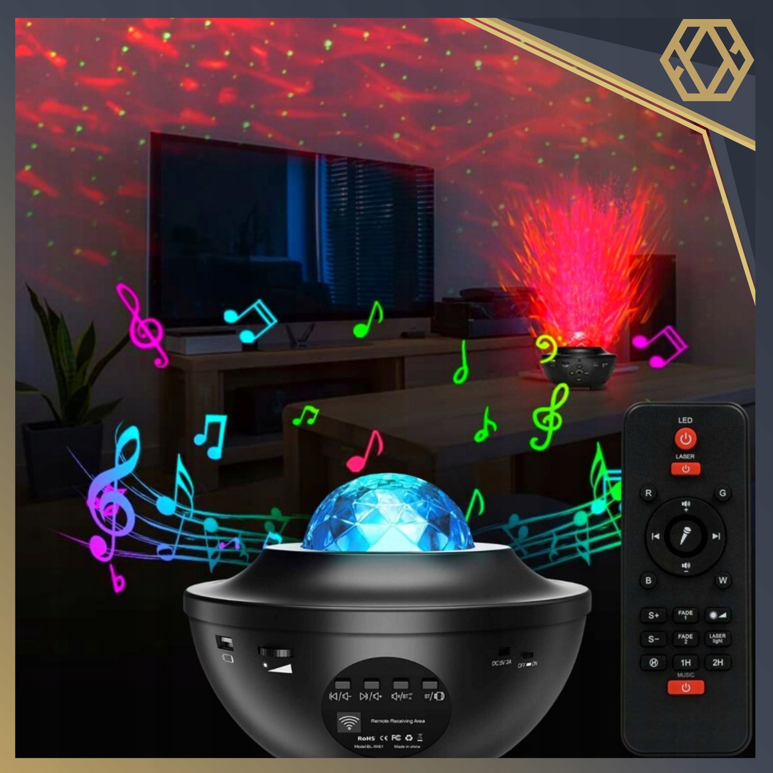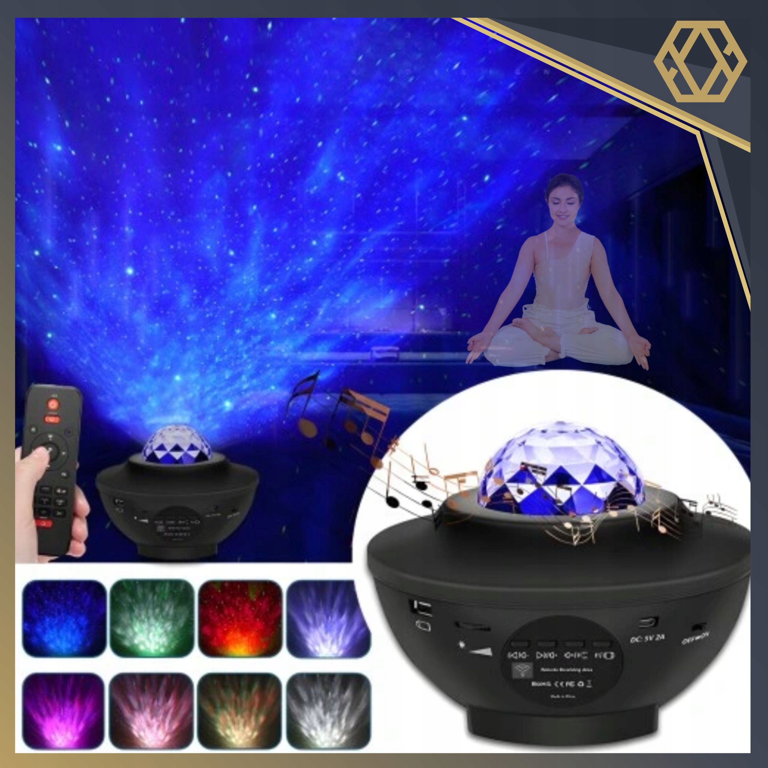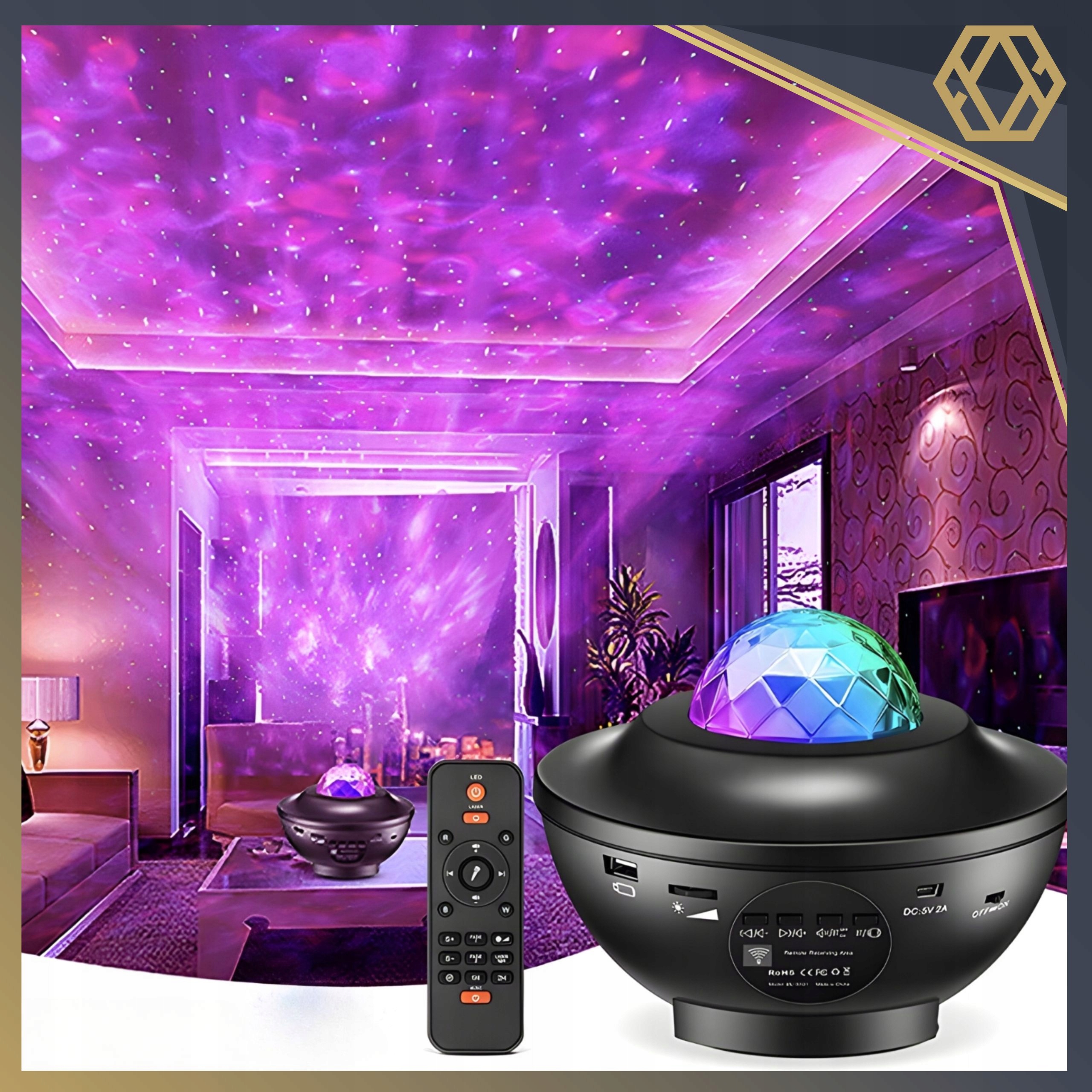 PROJEKTOR GWIAZD DLA DZIECI RZUTNIK NIEBA KOSMOSU GŁOŚNIK BLUETOOTH PILOT