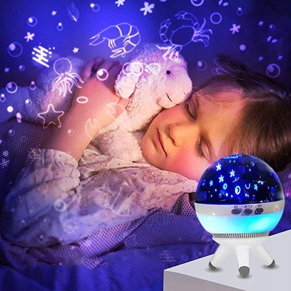 Обертання робить проектор унікальним. Автоматичний поворот змусить малюка заспокоїтися і спокійно заснути. Лампа має безпечні для очей світлодіодні діоди. Проектор ідеально підходить для днів народжень та різноманітних особливих подій, таких як дні народження, іменини тощо.