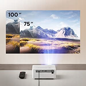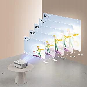 Проекція співвідношення 1:1,1, що означає, що з відстані 1 метр ви отримаєте екран з діагоналлю 36". Відстань проекції становить від 0,6 до 4 метрів, що дає розмір зображення від 22 до 142 дюймів оснащений корекцією трапецоїдних спотворень і 25% масштабування, що дозволяє зменшити розмір проекції до 75%, не переміщаючи пристрій.