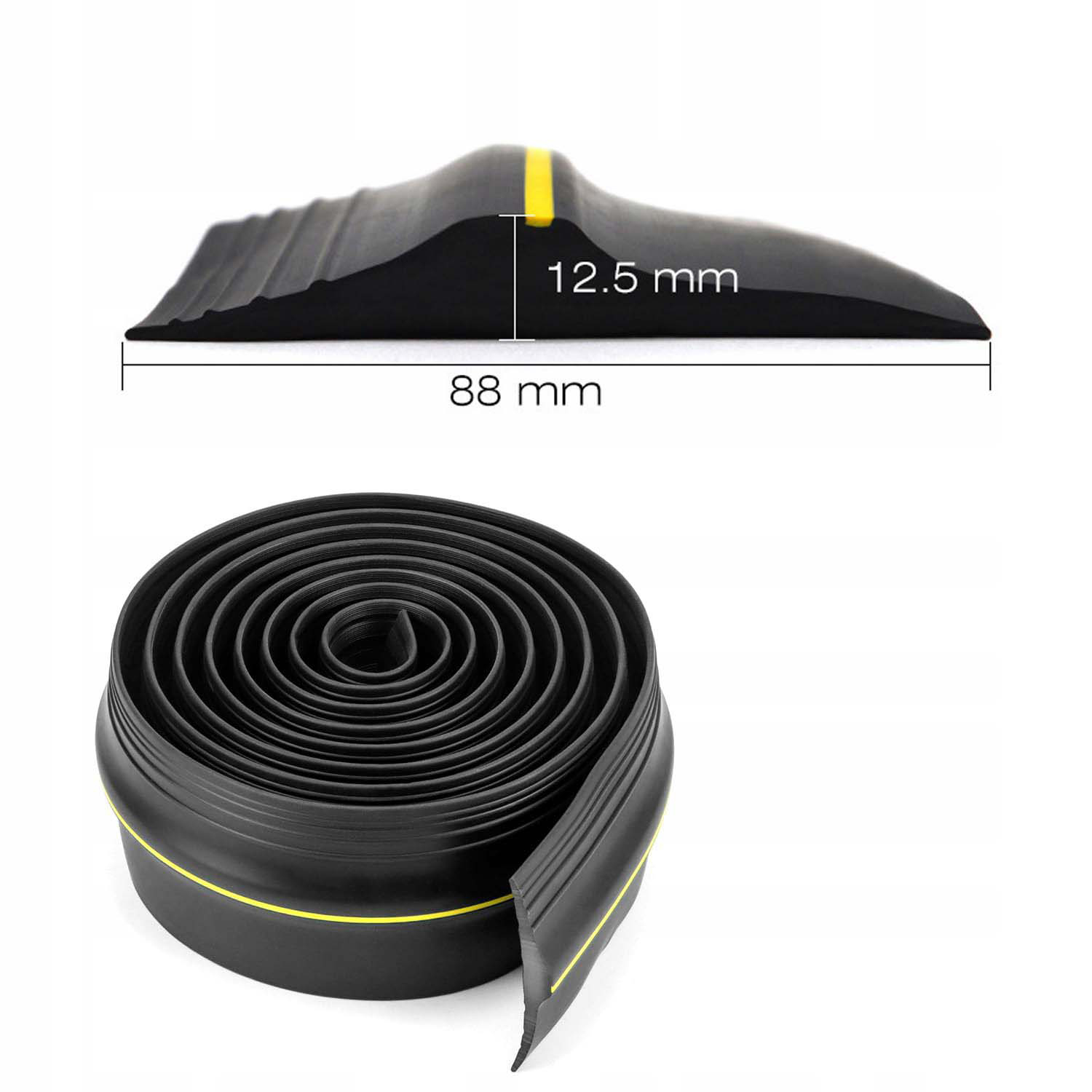 Наші гаражні двері ущільнювачі мають приблизно 3 метри в довжину, 88 мм в ширину та 12 мм у висоту, їх можна легко обрізати відповідно до довжини порога, і їх можна безпечно використовувати на бетоні, асфальті та фарбі.