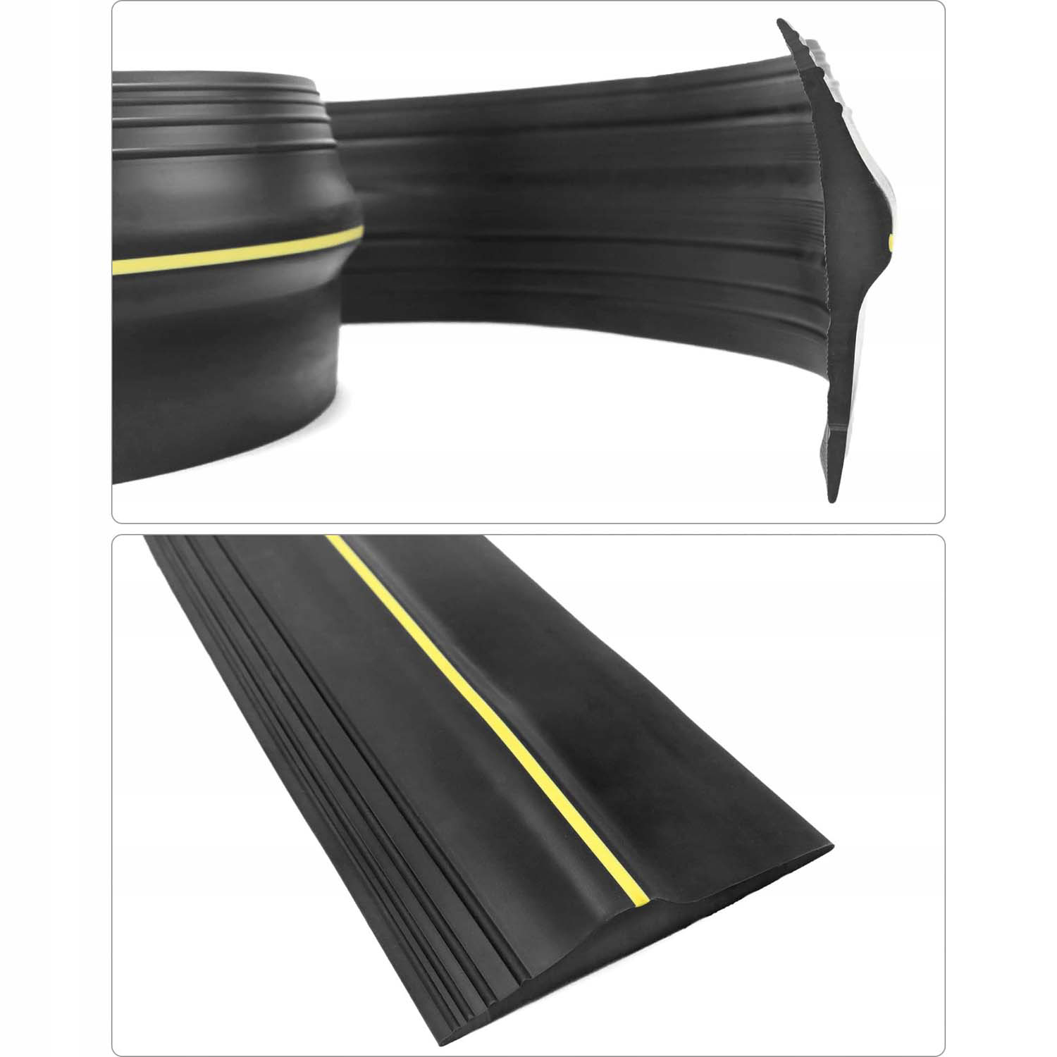 Наші ущільнювачі порогів гаража оснащені довгими яскраво-жовтими смугами безпеки, які забезпечують хорошу видимість для пішоходів і транспортних засобів, які в'їжджають і виїжджають з гаража. Ущільнювач гаражних воріт запобігає ковзанню та падінню, а зубчаста рифлена основа забезпечує ідеальну поверхню для забезпечення хорошого з’єднання між ущільнювачем і підлогою.