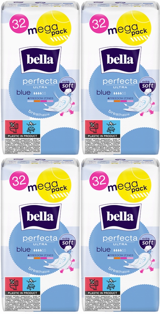М'які гігієнічні прокладки Bella Perfecta Ultra Blue з крильцями 32 шт. x 4
