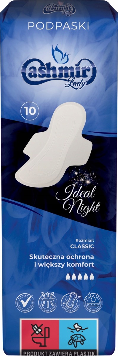 Гігієнічні прокладки Classic Cashmir Night правильної форми розроблені для жінок, які цінують комфорт і безпеку, особливо вночі.