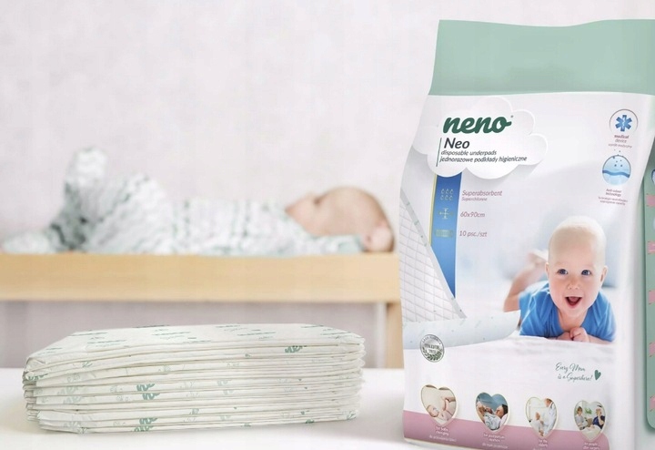 Зміна підгузників дитині вимагає належної гігієни та оточення. Водночас ми добре знаємо, що змінити підгузник не завжди можна в комфортних умовах. І вдома, і в екстрених ситуаціях справа буде легшою з одноразовими гігієнічними прокладками Neno Neo, які забезпечують захист матраца або м'яку і чисту поверхню для дитини.