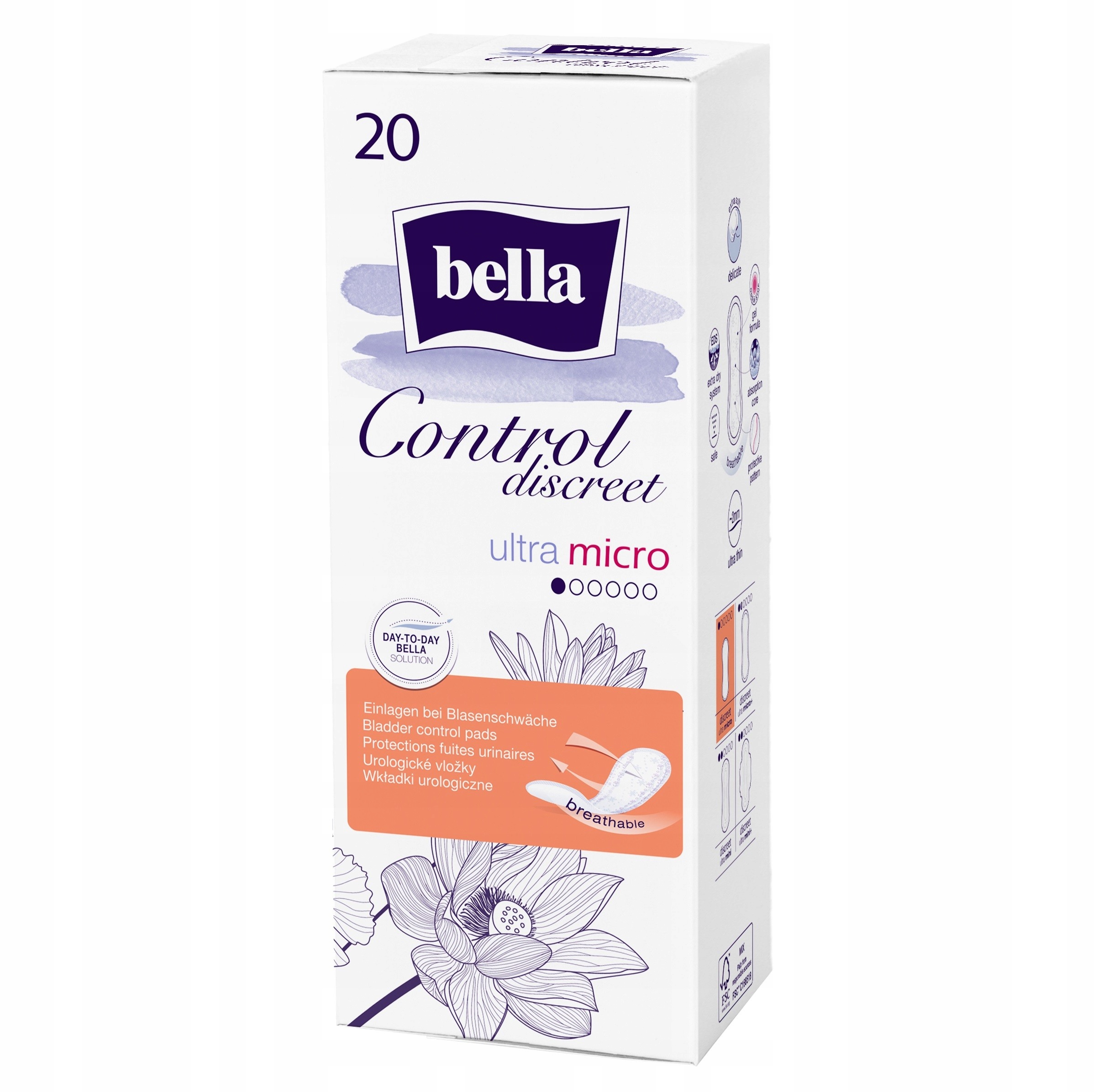 Урологічні вкладиші для жінок Bella Control Discreet Ultra Micro - це відповідь на потреби жінок різного віку, які борються з крапельним нетриманням сечі. Вони виглядають як традиційні гігієнічні прокладки, але набагато краще вбирають і нейтралізують неприємні запахи.