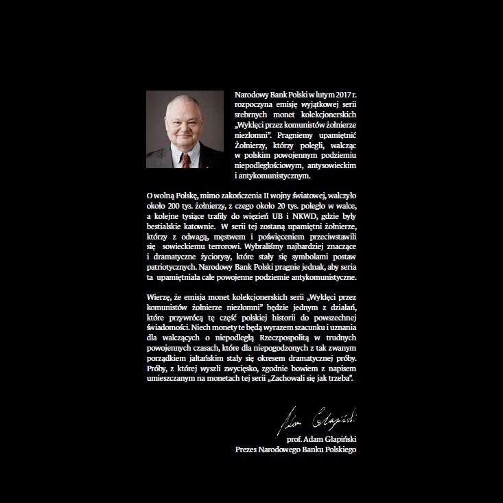 Оригінальний колективний буклет НБП, що відкриває всю серію «Прокляті комуністами, незмінні солдати» » з 2017 року, включно з усіма 22 Солдатами із серії з основними даними від «Інки» до «Кручека», загалом 26 сторінок.
