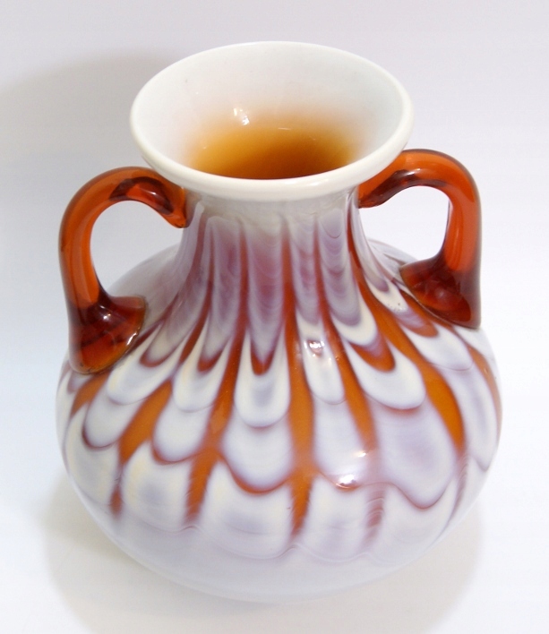 Предмет аукціону - красива, стара ваза, виготовлена з кольорового скла тонованого в масі, ваза важка і масивна.